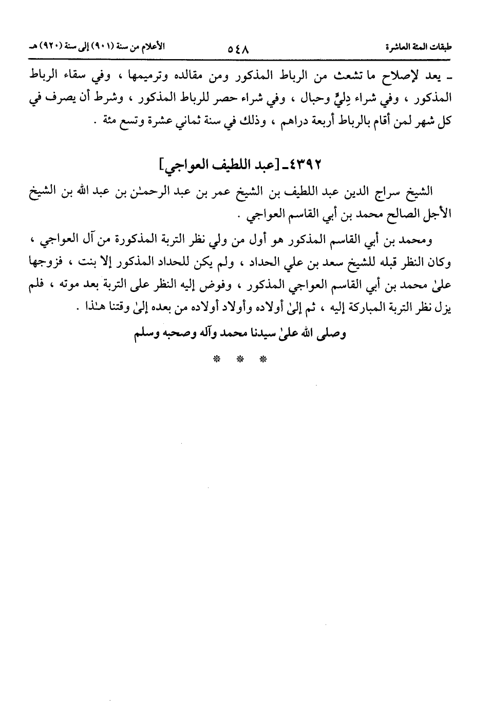 الشيخ سراج الدين عبد اللطيف بن الشيخ عمر بن عبد الرحمن بن عبد الله بن الشيخ الأجل الصالح محمد بن أبي القاسم العواجي.
