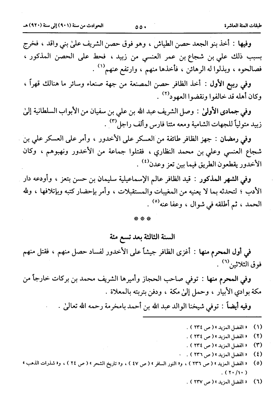 (5) «الفضل المزيد» (ص 236)، و «النور السافر» (ص 47)، و «تاريخ الشحر» (ص 24)، و «شذرات الذهب» (10/ 20).