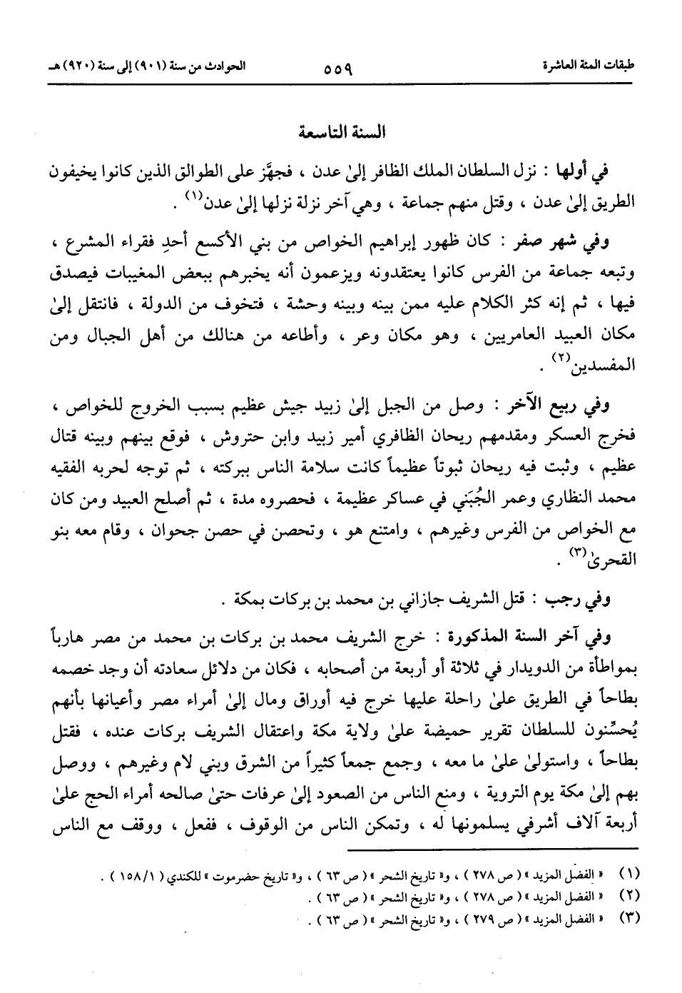 (1) «الفضل المزيد» (ص 278)، و «تاريخ الشحر» (ص 63)، و «تاريخ حضرموت» للكندي (1/ 158).