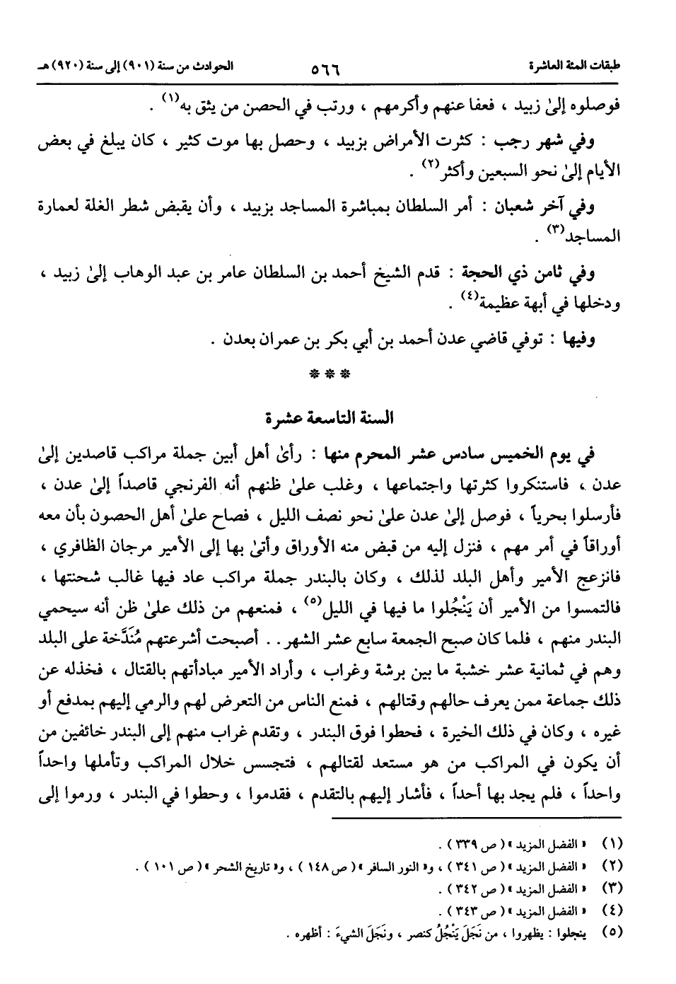 (2) «الفضل المزيد» (ص 341)، و «النور السافر» (ص 148)، و «تاريخ الشحر» (ص 101).