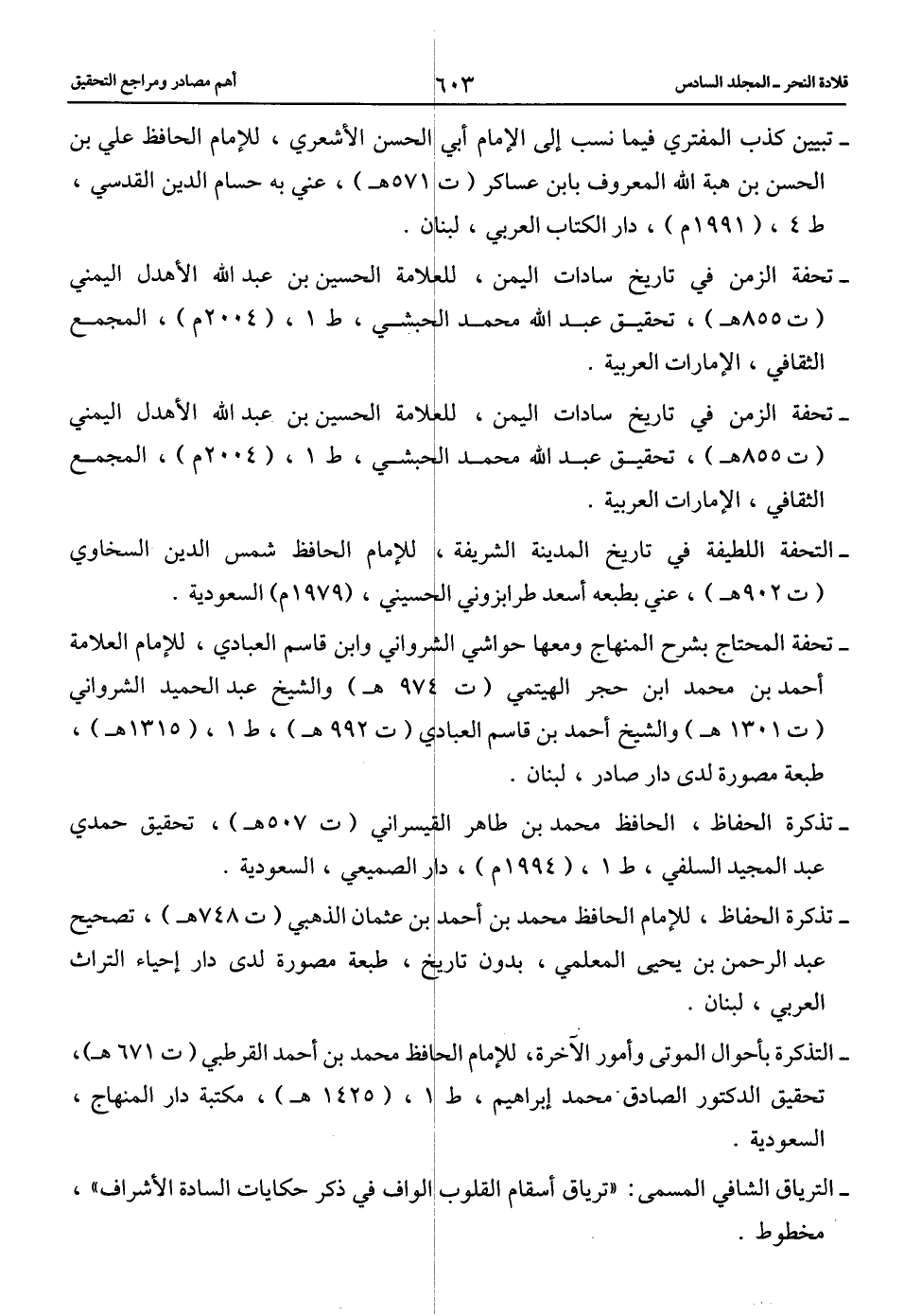 -تحفة المحتاج بشرح المنهاج ومعها حواشي الشرواني وابن قاسم العبادي، للإمام العلامة أحمد بن محمد ابن حجر الهيتمي (ت 974 هـ) والشيخ عبد الحميد الشرواني (ت 1301 هـ) والشيخ أحمد بن قاسم العبادي (ت 992 هـ)، ط 1، (1315 هـ)، طبعة مصورة لدى دار صادر، لبنان.