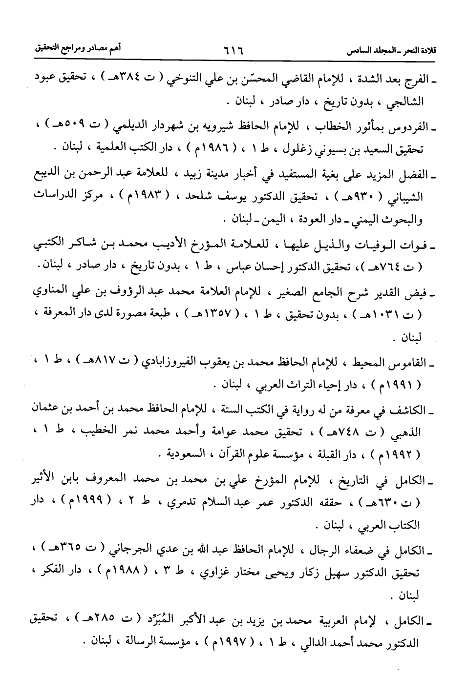-الكامل في التاريخ، للإمام المؤرخ علي بن محمد بن محمد المعروف بابن الأثير (ت 630 هـ)، حققه الدكتور عمر عبد السلام تدمري، ط 2، (1999 م)، دار الكتاب العربي، لبنان.