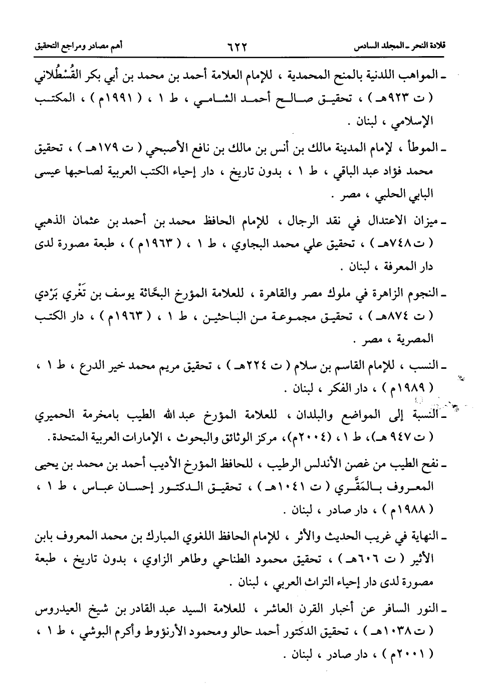 -النور السافر عن أخبار القرن العاشر، للعلامة السيد عبد القادر بن شيخ العيدروس (ت 1038 هـ)، تحقيق الدكتور أحمد حالو ومحمود الأرنؤوط وأكرم البوشي، ط 1، (2001 م)، دار صادر، لبنان.