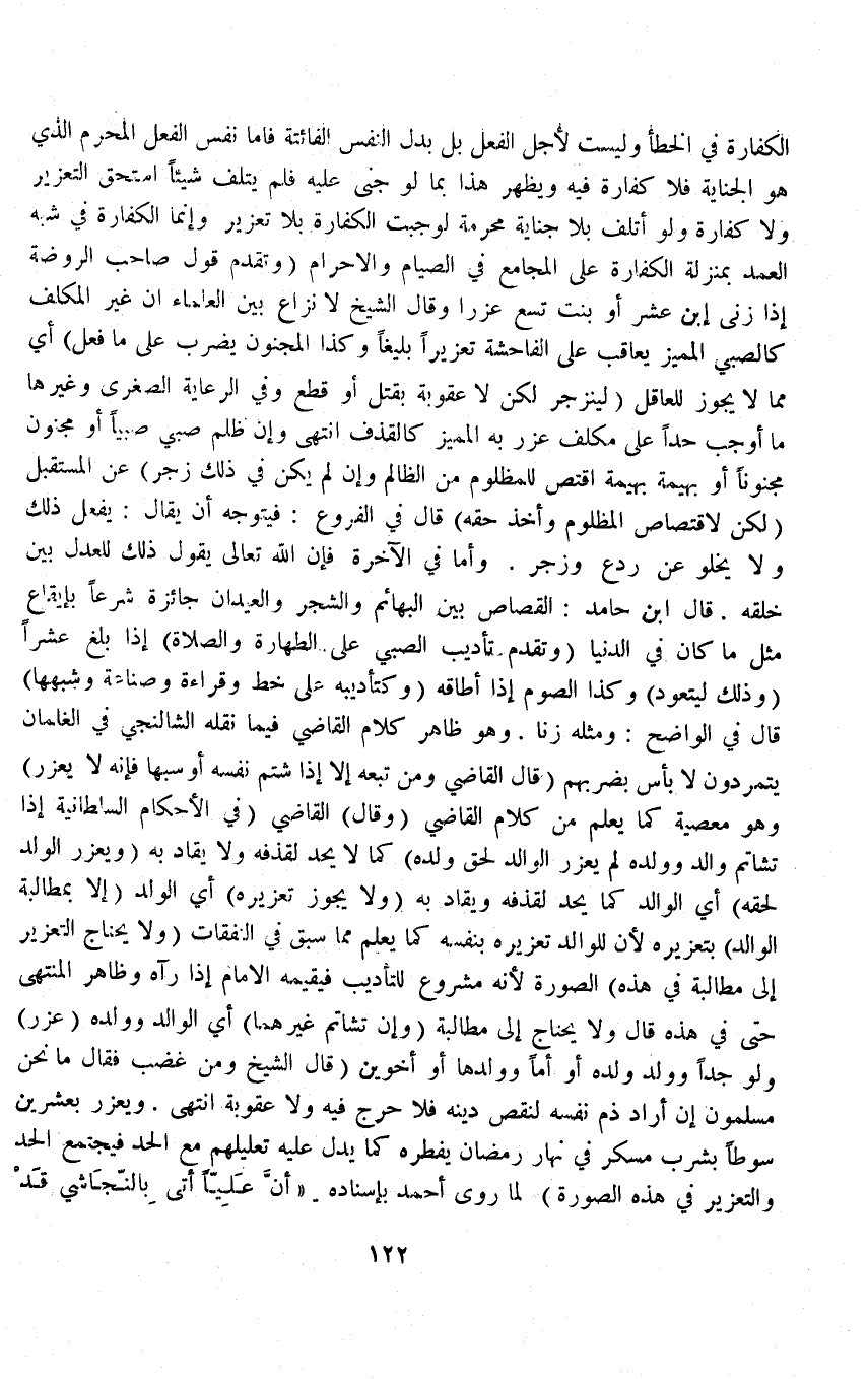 الْكَفَّارَةِ فِي الْخَطَأِ وَلَيْسَتْ لِأَجْلِ الْفِعْلِ بَلْ بَدَلَ النَّفْسِ الْفَائِتَةِ فَأَمَّا نَفْسُ الْفِعْلِ الْمُحَرَّمِ الَّذِي هُوَ الْجِنَايَةُ فَلَا كَفَّارَةَ فِيهِ وَيَظْهَرُ هَذَا بِمَا لَوْ جَنَى عَلَيْهِ فَلَمْ يُتْلِفْ شَيْئًا اسْتَحَقَّ التَّعْزِيرَ وَلَا كَفَّارَةَ وَلَوْ أَتْلَفَ بِلَا جِنَايَةٍ مُحَرَّمَةٍ لَوَجَبَتْ الْكَفَّارَةُ بِلَا تَعْزِيرٍ وَإِنَّمَا الْكَفَّارَةُ فِي شَبَهِ الْعَمْدِ بِمَنْزِلَةِ الْكَفَّارَةِ عَلَى الْمَجَامِعِ فِي الصِّيَامِ وَالْإِحْرَامِ.