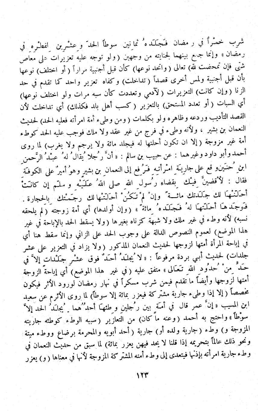 لِمَا رَوَى أَحْمَدُ وَأَبُو دَاوُد وَغَيْرُهُمَا: عَنْ حَبِيبِ بْنِ سَالِمٍ: «أَنَّ رَجُلًا يُقَالُ لَهُ عَبْدُ الرَّحْمَنِ بْنُ حُنَيْنٍ وَقَعَ عَلَى جَارِيَةِ امْرَأَتِهِ فَرُفِعَ إلَى النُّعْمَانِ بْنِ بَشِيرٍ وَهُوَ أَمِيرٌ عَلَى الْكُوفَةِ فَقَالَ: لَأَقْضِيَنَّ فِيكَ بِقَضَاءِ رَسُولِ اللَّهِ - صَلَّى اللَّهُ عَلَيْهِ وَسَلَّمَ - إنْ كَانَتْ أَحَلَّتْهَا لَكَ جَلَدْتُكَ مِائَةً وَإِنْ لَمْ تَكُنْ أَحَلَّتْهَا لَكَ رَجَمْتُكَ بِالْحِجَارَةِ فَوَجَدَهَا أَحَلَّتْهَا لَهُ فَجَلَدَهُ مِائَةً» (وَإِنْ أَوْلَدَهَا) أَيْ أَمَةَ زَوْجَتِهِ (لَمْ يَلْحَقْهُ نَسَبُهُ) لِأَنَّهُ وَطْءٌ فِي غَيْرِ مِلْكٍ وَلَا شُبْهَةٍ كَزِنَاهُ بِغَيْرِهَا (وَلَا يَسْقُطُ الْحَدُّ بِالْإِبَاحَةِ فِي غَيْرِ هَذَا الْمَوْضِعِ) لِعُمُومِ النُّصُوصِ الدَّالَّةِ عَلَى وُجُوبِ الْحَدِّ عَلَى الزَّانِي وَإِنَّمَا سَقَطَ هُنَا أَيْ فِي إبَاحَةِ الْمَرْأَةِ أَمَتَهَا لِزَوْجِهَا لِحَدِيثِ النُّعْمَانِ الْمَذْكُورِ (وَلَا يُزَادُ فِي التَّعْزِيرِ عَلَى عَشْرِ جَلْدَاتٍ) لِحَدِيثِ أَبِي بُرْدَةَ مَرْفُوعًا: «لَا يُجْلَدُ أَحَدٌ فَوْقَ عَشْرِ جَلْدَاتٍ إلَّا فِي حَدٍّ مِنْ حُدُودِ اللَّهِ تَعَالَى» مُتَّفَقٌ عَلَيْهِ (فِي غَيْرِ هَذَا الْمَوْضِعِ) أَيْ إبَاحَةِ الزَّوْجَةِ أَمَتَهَا لِزَوْجِهَا وَأَيْضًا مَا تَقَدَّمَ فِيمَنْ شَرِبَ مُسْكِرًا فِي نَهَارِ رَمَضَانَ لِوُرُودِ الْأَثَرِ فَيَكُونُ مُخَصَّصًا (إلَّا إذَا وَطِئَ جَارِيَةً مُشْتَرَكَةً فَيُعَزَّرُ بِمِائَةٍ إلَّا سَوْطًا) لِمَا رَوَى الْأَثْرَمُ عَنْ سَعِيدِ بْنِ الْمُسَيِّبِ " إنَّ عُمَرَ قَالَ فِي أَمَةٍ بَيْنَ رَجُلَيْنِ وَطِئَهَا أَحَدُهُمَا يُجْلَدُ الْحَدُّ إلَّا سَوْطًا " وَاحْتَجَّ بِهِ أَحْمَدُ (وَعَنْهُ مَا كَانَ) مِنْ التَّعَازِيرِ (سَبَبُهُ الْوَطْءُ كَوَطْئِهِ جَارِيَتَهُ الْمُزَوَّجَةَ وَ) وَطْءُ (جَارِيَةِ وَلَدِهِ أَوْ جَارِيَةِ أَحَدِ أَبَوَيْهِ وَالْمُحَرَّمَةِ بِرَضَاعٍ وَوَطْءِ مَيِّتَةٍ وَنَحْوِ ذَلِكَ عَالِمًا بِتَحْرِيمِهِ إذَا قُلْنَا لَا يُحَدُّ فِيهِنَّ يُعَزَّرُ بِمِائَةٍ) لِمَا سَبَقَ مِنْ حَدِيثِ النُّعْمَانِ فِي وَطْءِ جَارِيَةِ امْرَأَتِهِ بِإِذْنِهَا فَيَتَعَدَّى إلَى وَطْءِ أَمَتِهِ الْمُشْتَرَكَةِ الْمُزَوَّجَةِ لِأَنَّهَا فِي مَعْنَاهَا.