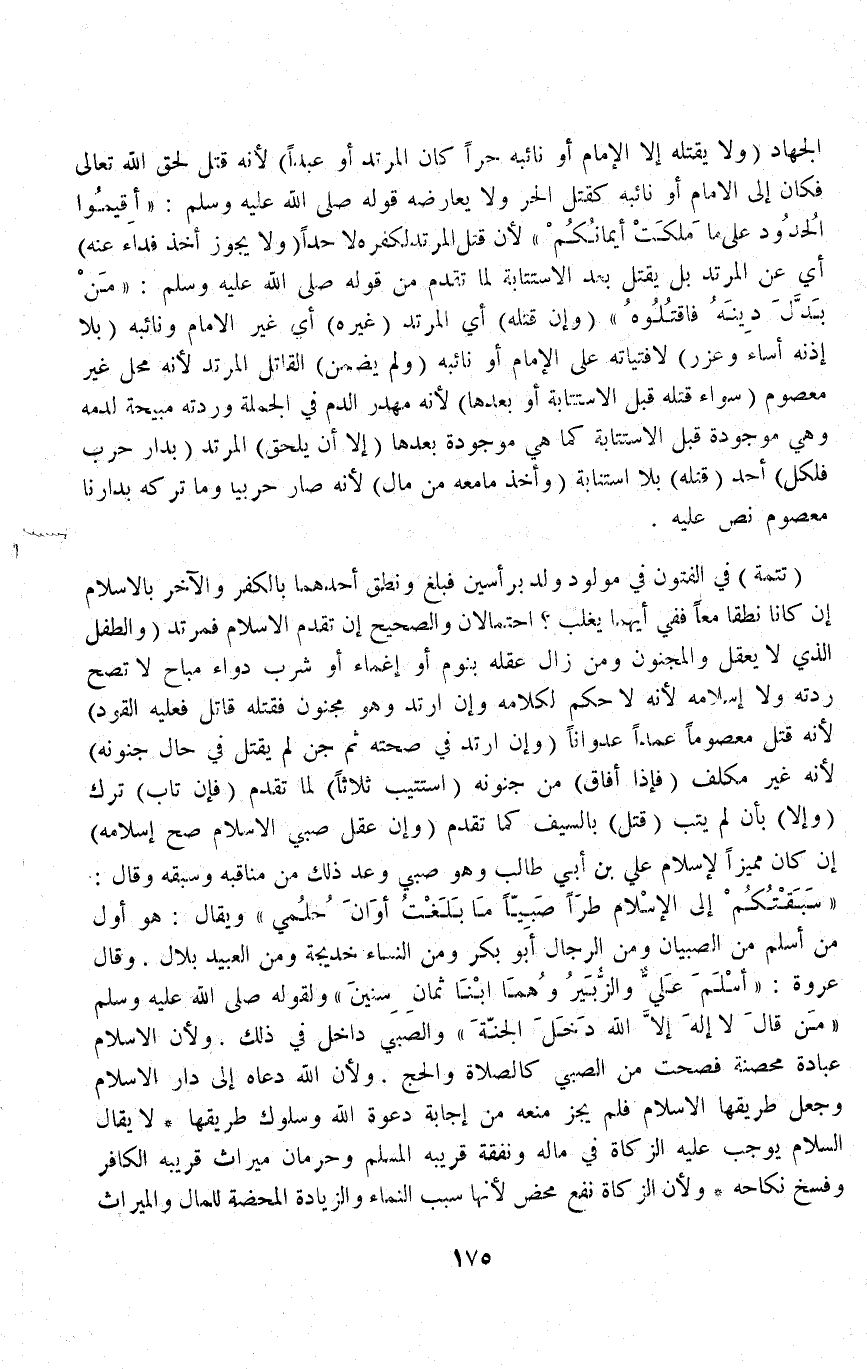 (تَتِمَّةٌ) فِي الْفُنُونِ فِي مَوْلُودٍ وُلِدَ بِرَأْسَيْنِ فَبَلَغَ وَنَطَقَ أَحَدُهُمَا بِالْكُفْرِ وَالْآخَرُ بِالْإِسْلَامِ إنْ كَانَا نَطَقَا مَعًا فَفِي أَيِّهِمَا يُغَلَّبُ؟ احْتِمَالَانِ وَالصَّحِيحُ إنْ تَقَدَّمَ الْإِسْلَامُ فَمُرْتَدٌّ.