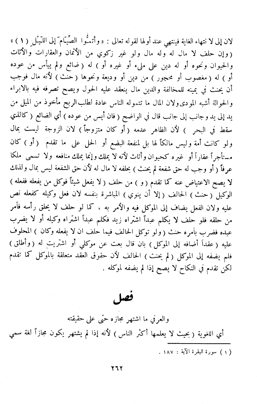 [فَصْل وَالْعُرْفِيُّ مَا اشْتَهَرَ مَجَازُهُ حَتَّى عَلَى حَقِيقَتِهِ]