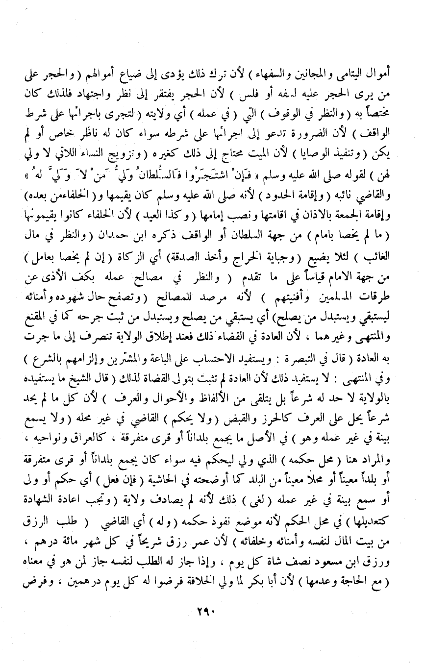 الْيَتَامَى وَالْمَجَانِينِ وَالسُّفَهَاءِ) لِأَنَّ تَرْكَ ذَلِكَ يُؤَدِّي إلَى ضَيَاعِ أَمْوَالِهِمْ (وَالْحَجْرُ عَلَى مَنْ يَرَى الْحَجْرَ عَلَيْهِ لِسَفَهٍ أَوْ فَلَسٍ) لِأَنَّ الْحَجْرَ يَفْتَقِرُ إلَى نَظَرٍ وَاجْتِهَادٍ فَلِذَلِكَ كَانَ مُخْتَصًّا بِهِ.