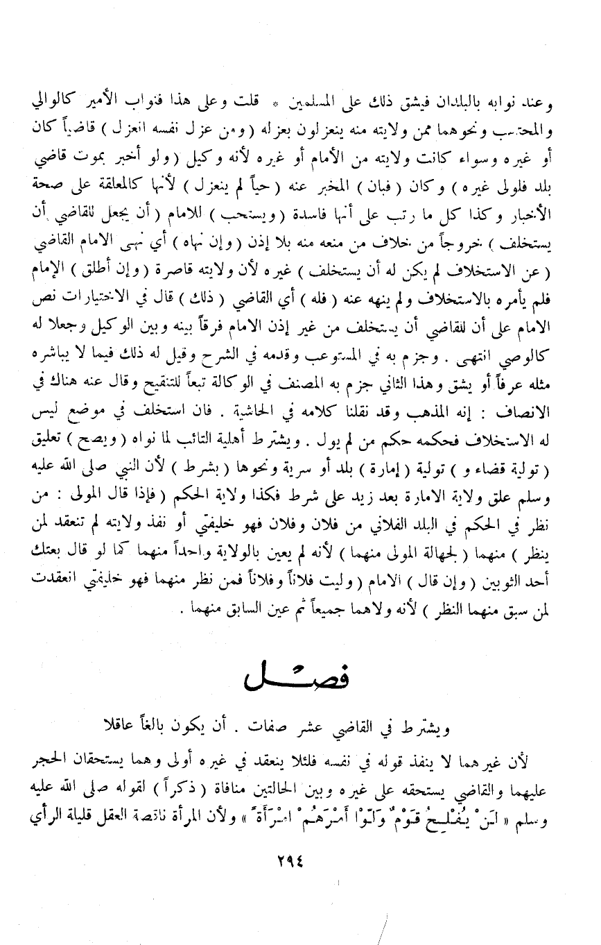 [فَصْلٌ وَيُشْتَرَطُ فِي الْقَاضِي عَشْرُ صِفَاتٍ]