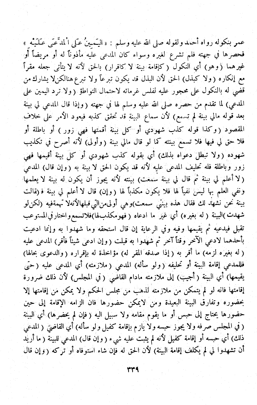 إقَامَتُهَا فَإِنَّهُ لَوْ لَمْ يَتَمَكَّنْ مِنْ مُلَازَمَتِهِ لَذَهَبَ مِنْ مَجْلِسِ الْحُكْمِ وَلَا يُمَكَّنُ مِنْ إقَامَتِهَا إلَّا بِحُضُورِهِ وَتُفَارَقُ الْبَيِّنَةُ الْبَعِيدَةُ وَمَنْ لَا يُمْكِنُ حُضُورُهَا فَإِنَّ إلْزَامَهُ الْإِقَامَةَ إلَى حِينِ حُضُورِهَا يَحْتَاجُ إلَى حَبْسٍ أَوْ مَا يَقُومُ مَقَامَهُ وَلَا سَبِيلَ إلَيْهِ.