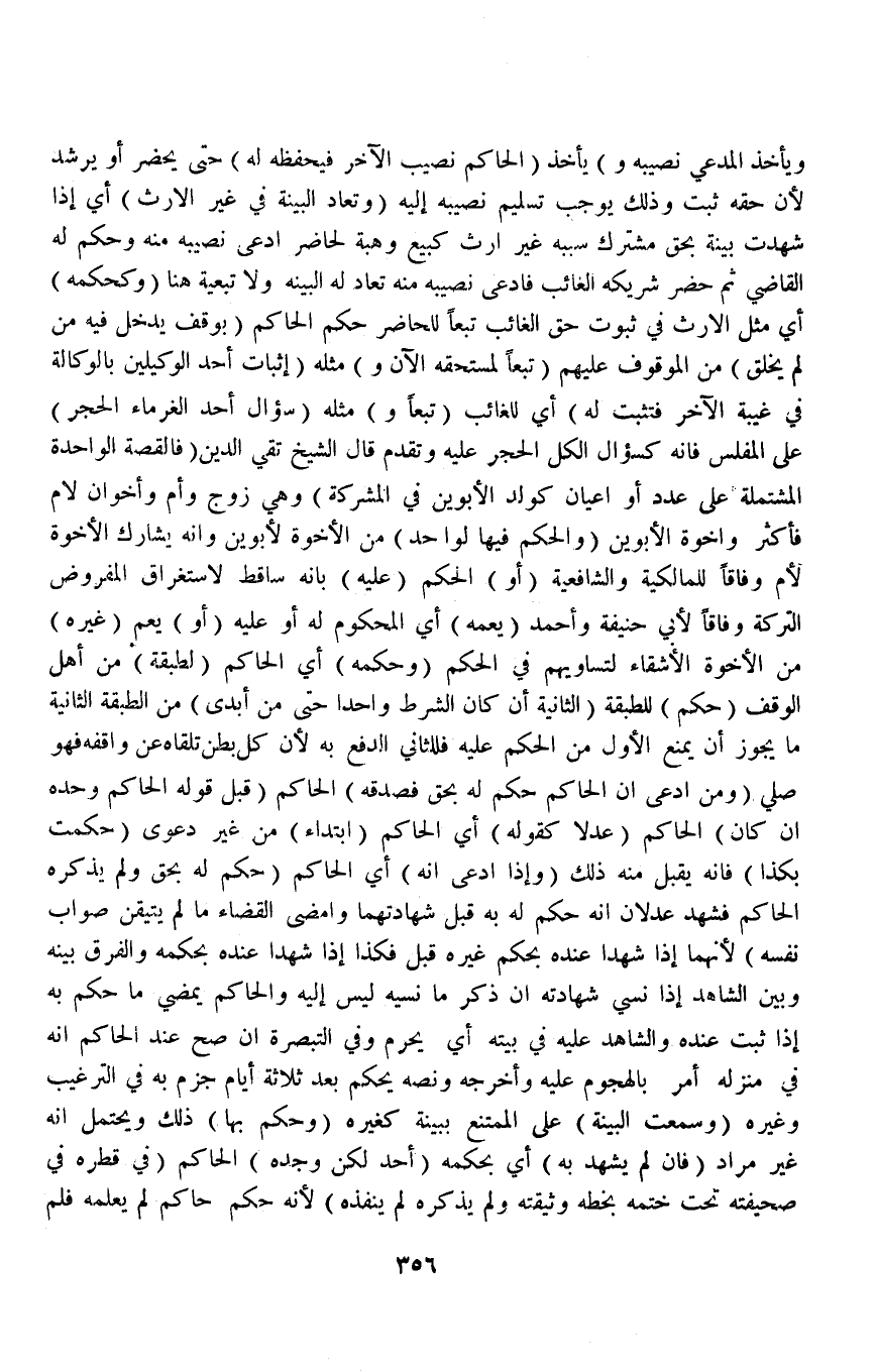 قَالَ الشَّيْخُ تَقِيُّ الدِّينِ (فَالْقِصَّةُ الْوَاحِدَةُ الْمُشْتَمِلَةُ عَلَى عَدَدٍ أَوْ أَعْيَانٍ كَوَلَدِ الْأَبَوَيْنِ فِي الْمُشْرِكَةِ) وَهِيَ زَوْجٌ وَأُمٌّ وَأَخَوَانِ لِأُمٍّ فَأَكْثَر وَإِخْوَةُ الْأَبَوَيْنِ (وَالْحُكْمُ فِيهَا لِوَاحِدٍ) مِنْ الْإِخْوَةِ لِأَبَوَيْنِ وَإِنَّهُ يُشَارِكُ الْإِخْوَةَ لِأُمٍّ وِفَاقًا لِلْمَالِكِيَّةِ وَالشَّافِعِيَّةِ (أَوْ) الْحُكْمُ (عَلَيْهِ) بِأَنَّهُ سَاقِطٌ لِاسْتِغْرَاقِ الْمَفْرُوضِ التَّرِكَةَ وِفَاقًا لِأَبِي حَنِيفَةَ وَأَحْمَدَ (يَعُمُّهُ) أَيْ الْمَحْكُومَ لَهُ أَوْ عَلَيْهِ (أَوْ) يَعُمُّ (غَيْرَهُ) مِنْ الْإِخْوَةِ الْأَشِقَّاءِ لِتُسَاوِيهِمْ فِي الْحُكْمِ (وَحُكْمُهُ) أَيْ الْحَاكِمِ (لِطَبَقَةٍ) مِنْ أَهْلِ الْوَقْفِ (حُكْمٌ) لِلطَّبَقَةِ (الثَّانِيَةِ إنْ كَانَ الشَّرْطُ وَاحِدًا حَتَّى مَنْ أَبْدَى) مِنْ الطَّبَقَةِ الثَّانِيَةِ مَا يَجُوزُ أَنْ يَمْنَعَ الْأَوَّلَ مِنْ الْحُكْمِ عَلَيْهِ فَلِلثَّانِي الدَّفْعُ بِهِ لِأَنَّ كُلَّ بَطْنٍ تَلَقَّاهُ عَنْ وَاقِفِهِ فَهُوَ صَلِيٌّ.