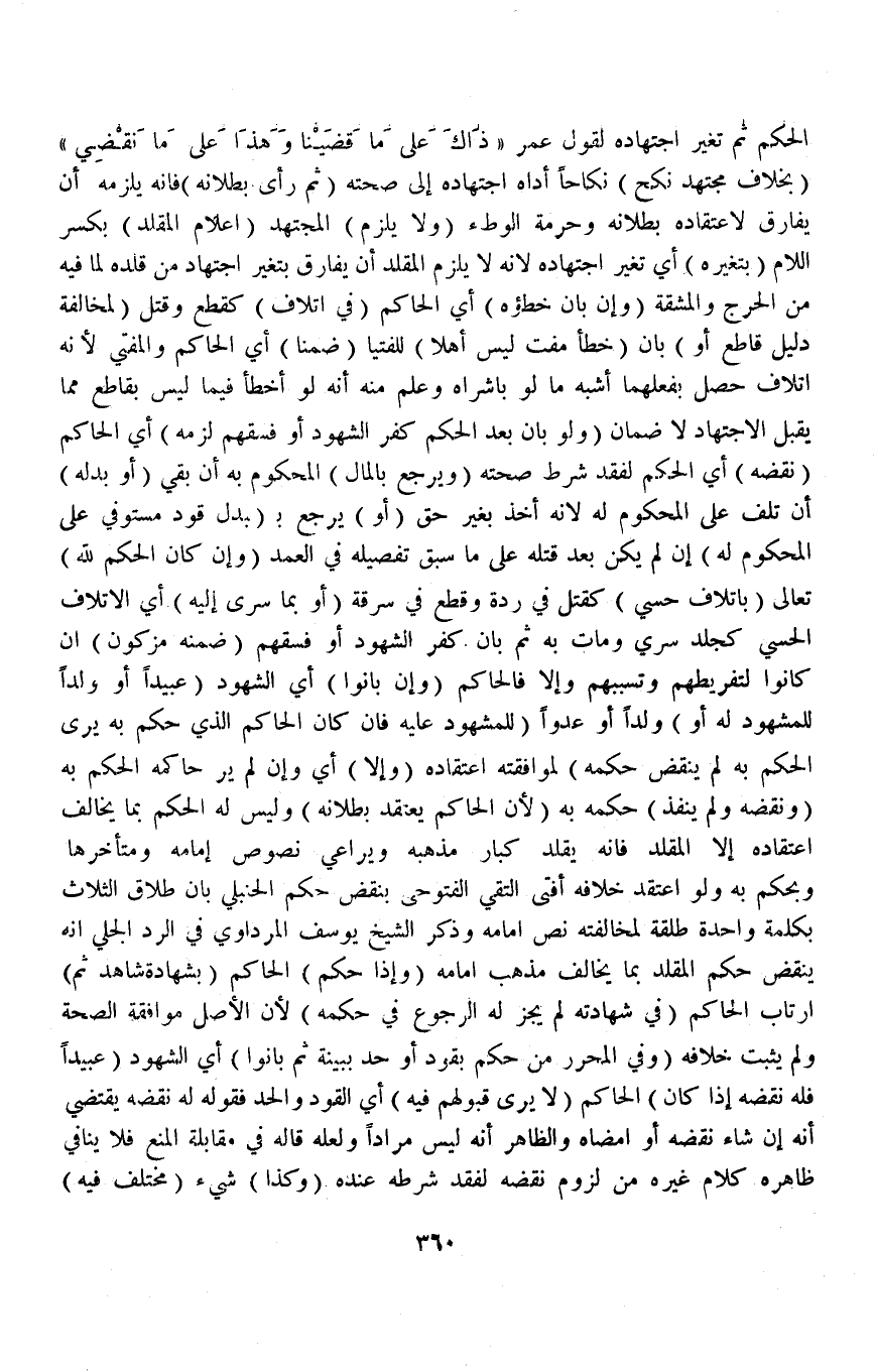 الْحُكْمِ ثُمَّ تَغَيَّرَ اجْتِهَادُهُ لِقَوْلِ عُمَرَ " ذَاكَ عَلَى مَا قَضَيْنَا وَهَذَا عَلَى مَا نَقْضِي " (بِخِلَافِ مُجْتَهِدٍ نَكَحَ) نِكَاحًا أَدَّاهُ اجْتِهَادُهُ إلَى صِحَّتِهِ (ثُمَّ رَأَى بُطْلَانَهُ) فَإِنَّهُ يَلْزَمُهُ أَنْ يُفَارِقَ لِاعْتِقَادِهِ بُطْلَانَهُ وَحُرْمَةَ الْوَطْءِ.