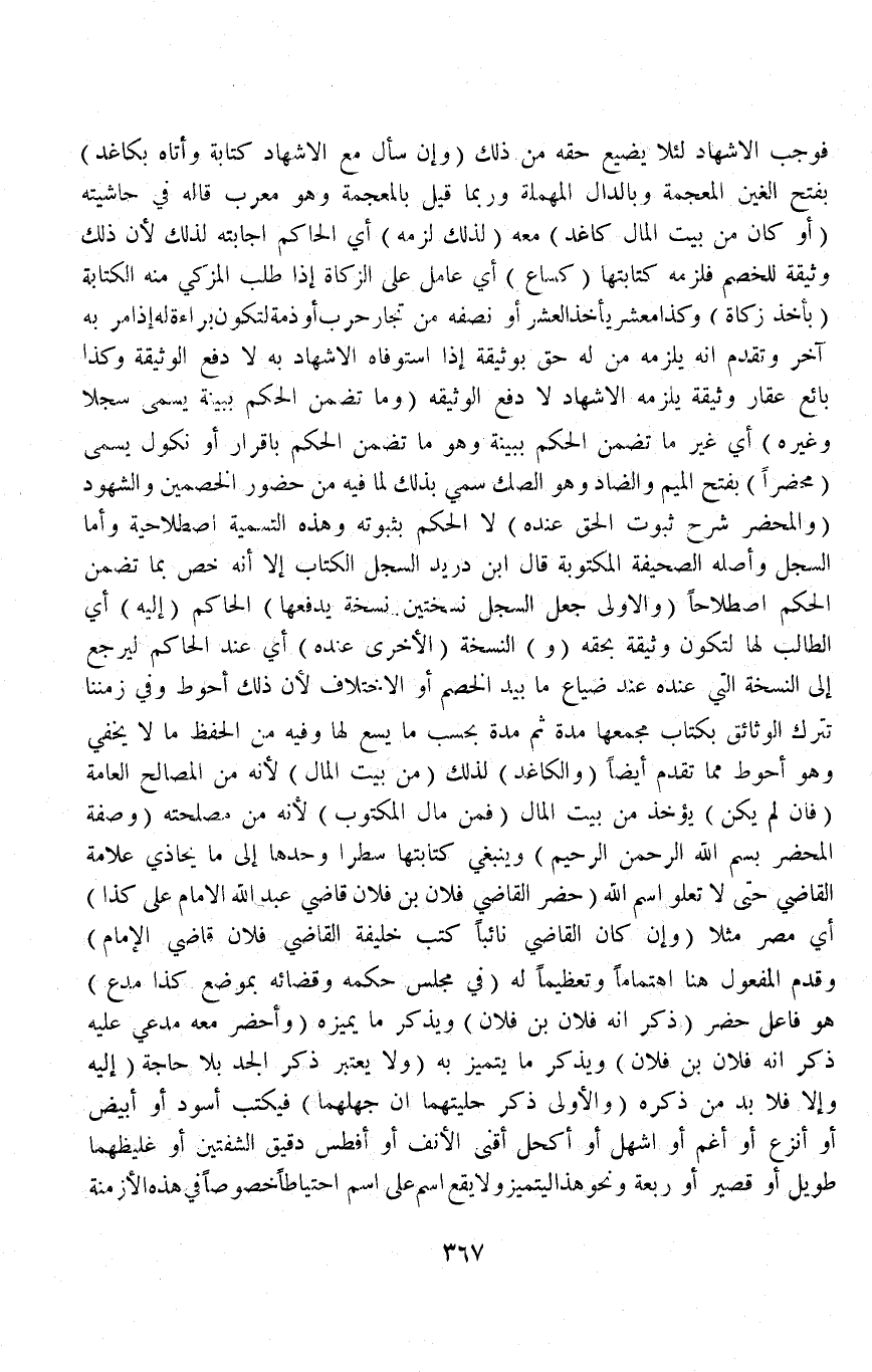 وَكَذَا مُعَشِّرٌ يَأْخُذُ الْعُشْرَ أَوْ نِصْفَهُ مِنْ تُجَّارِ حَرْبٍ أَوْ ذِمَّةٍ لِتَكُونَ بَرَاءَةً لَهُ إذَا مَرَّ بِهِ آخَرُ وَتَقَدَّمَ أَنَّهُ يَلْزَمُهُ مَنْ لَهُ حَقٌّ بِوَثِيقَةٍ إذَا اسْتَوْفَاهُ الْإِشْهَادُ بِهِ لَا دَفْعُ الْوَثِيقَةِ، وَكَذَا بَائِعُ عَقَارٍ وَثِيقَة يَلْزَمُهُ الْإِشْهَادُ لَا دَفْعُ الْوَثِيقَةِ (وَمَا تَضَمَّنَ الْحُكْمَ بِبَيِّنَةٍ يُسَمَّى سِجِلًّا وَغَيْرُهُ) أَيْ غَيْرُ مَا تَضَمَّنَ الْحُكْمَ بِبَيِّنَةٍ وَهُوَ مَا تَضَمَّنَ الْحُكْمَ بِإِقْرَارٍ أَوْ نُكُولٍ يُسَمَّى (مَحْضَرًا) بِفَتْحِ الْمِيمِ وَالضَّادِ وَهُوَ الصَّكُّ سُمِّيَ بِذَلِكَ لِمَا فِيهِ مِنْ حُضُورِ الْخَصْمَيْنِ وَالشُّهُودِ (وَالْمَحْضَرُ شَرَحَ ثُبُوتَ الْحَقِّ عِنْدَهُ) لَا الْحُكْمَ بِثُبُوتِهِ وَهَذِهِ التَّسْمِيَةُ اصْطِلَاحِيَّةٌ.