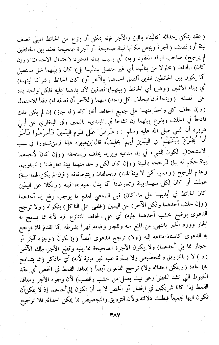 (عَقْدًا يُمْكِنُ إحْدَاثُهُ كَالْبِنَاءِ بِاللَّبِنِ وَالْآجُرِّ فَإِنَّهُ يُمْكِنُ أَنْ يُنْزَعَ مِنْ الْحَائِطِ الْمَبْنِيِّ نِصْفُ لَبِنَةٍ أَوْ) نِصْفُ (آجُرَّةٍ وَيَجْعَلَ مَكَانَهَا لَبِنَةً صَحِيحَةً أَوْ آجُرَّةً صَحِيحَةً تُعْقَدُ بَيْنَ الْحَائِطَيْنِ لَمْ يُرَجِّحْ) صَاحِبُ الْبِنَاءِ الْمَعْقُودِ (بِهِ) أَيْ بِسَبَبِ بِنَائِهِ الْمَعْقُودِ لِاحْتِمَالِ الْإِحْدَاثِ.