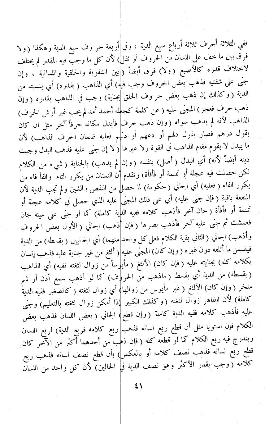 فَفِي الثَّلَاثَةِ أَحْرُفٍ ثَلَاثَةُ أَرْبَاعِ سُبْعٍ الدِّيَةِ، وَفِي أَرْبَعَةِ حُرُوفٍ سُبْعُ الدِّيَةِ وَهَكَذَا (وَلَا فَرْقَ بَيْنَ مَا خَفَّ عَلَى اللِّسَانِ مِنْ الْحُرُوفِ أَوْ ثَقُلَ) لِأَنَّ كُلَّ مَا وَجَبَ فِيهِ الْمُقَدَّرُ لَمْ يَخْتَلِفْ لِاخْتِلَافِ قَدْرِهِ كَالْأُصْبُعِ (وَلَا) فَرْقَ أَيْضًا (بَيْنَ الشَّفَوِيَّةِ وَالْحَلْقِيَّةِ وَاللِّسَانِيَّةِ، وَإِنْ جَنَى عَلَى شَفَتَيْهِ فَذَهَبَ بَعْضُ الْحُرُوفِ وَجَبَ فِيهِ) أَيْ الذَّاهِبِ (بِقَدْرِهِ) أَيْ بِنِسْبَتِهِ مِنْ الدِّيَةِ (وَكَذَلِكَ إنْ ذَهَبَ بَعْضُ حُرُوفِ الْحَلْق بِجِنَايَةٍ) وَجَبَ فِي الذَّاهِب بِقَدْرِهِ (وَإِنْ ذَهَبَ حَرْفٌ فَعَجَزَ) الْمَجْنِيُّ عَلَيْهِ (عَنْ كَلِمَةٍ كَجَعْلِهِ أَحْمَدَ أَمَدَ لَمْ يَجِبْ غَيْرَ أَرْشِ الْحَرْفِ) الذَّاهِبِ لِأَنَّهُ لَمْ يَذْهَبْ سِوَاهُ.