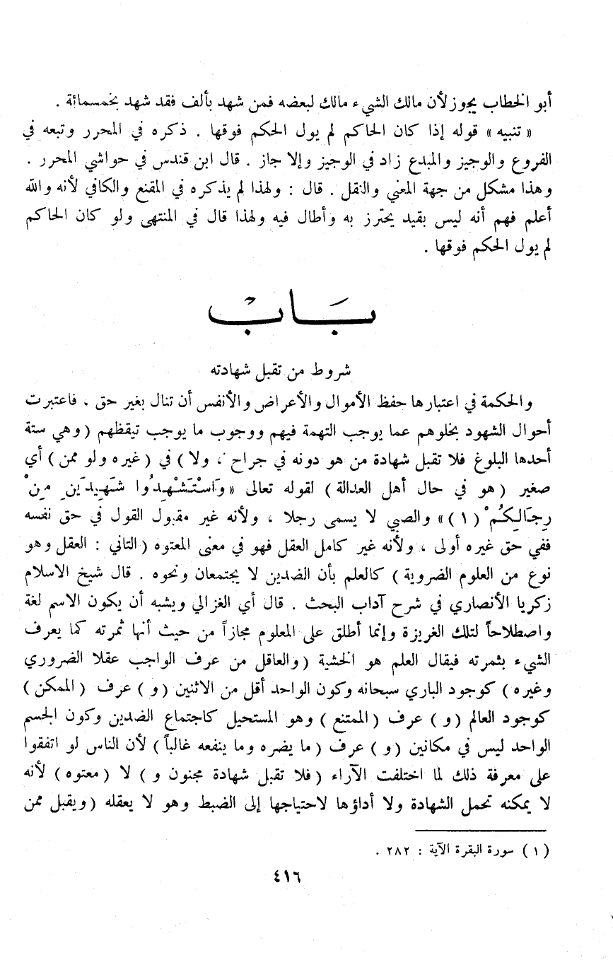 [بَاب شُرُوطُ مَنْ تُقْبَلُ شَهَادَتُهُ]