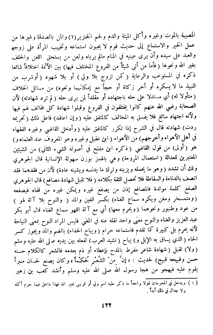 (فَأَمَّا مَنْ أَتَى شَيْئًا مِنْ الْفُرُوعِ الْمُخْتَلَفِ فِيهَا) بَيْنَ الْأَئِمَّةِ اخْتِلَافًا شَائِعًا ذَكَرَهُ فِي الْمُسْتَوْعِبِ وَالرِّعَايَةِ (كَمَنْ تَزَوَّجَ بِلَا وَلِيٍّ) أَوْ بِلَا شُهُودٍ (أَوْ شَرِبَ مِنْ النَّبِيذِ مَا لَا يُسْكِرُهُ أَوْ أَخَّرَ زَكَاةً أَوْ حَجًّا مَعَ إمْكَانِهِمَا وَنَحْوَهُ) مِنْ مَسَائِلِ الْخِلَافِ (مُتَأَوِّلًا لَهُ) أَيْ مُسْتَدِلًّا عَلَى حِلِّهِ بِاجْتِهَادِهِ أَوْ مُقَلِّدًا لِمَنْ يَرَى حِلَّهُ (لَمْ تُرَدَّ شَهَادَتُهُ) لِأَنَّ الصَّحَابَةَ كَانُوا يَخْتَلِفُونَ فِي الْفُرُوعِ وَقَبِلُوا شَهَادَةَ كُلَّ مُخَالِفٍ لَهُمْ فِيهَا وَلِأَنَّهُ اجْتِهَادٌ سَائِغٌ فَلَا يَفْسُقُ بِهِ الْمُخَالِفُ كَالْمُتَّفَقِ عَلَيْهِ (وَإِنْ اعْتَقَدَ) فَاعِلُ ذَلِكَ (تَحْرِيمَهُ رُدَّتْ) شَهَادَتُهُ قَالَ فِي الشَّرْحِ إذَا تَكَرَّرَ كَالْمُتَّفَقِ عَلَيْهِ (وَأَدْخَلَ الْقَاضِي وَغَيْرُهُ الْفُقَهَاءَ فِي أَهْلِ الْأَهْوَاءِ وَأَخْرَجَهُمْ) مِنْ الْأَهْوَاءِ (ابْنُ عَقِيلٍ وَغَيْرُهُ وَهُوَ الْمَعْرُوفُ عِنْدَ الْعُلَمَاءِ وَ) هُوَ أَوْلَى مِنْ قَوْلِ الْقَاضِي (ذَكَرَهُ ابْنُ مُفْلِحٍ فِي أُصُولِهِ) .