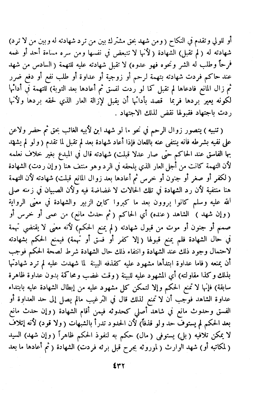 (وَمَنْ شَهِدَ بِحَقٍّ مُشْتَرَكٍ بَيْنَ مَنْ تُرَدُّ شَهَادَتُهُ لَهُ وَبَيْنَ مَنْ لَا تُرَدُّ) شَهَادَتُهُ لَهُ (لَمْ تُقْبَلْ) الشَّهَادَةُ (لِأَنَّهَا لَا تَتَبَعَّضُ فِي نَفْسِهَا وَمَنْ سَرَّهُ مُسَاءَةُ أَحَدٍ أَوْ غَمَّهُ فَرَحًا وَطَلَبَ لَهُ الشَّرَّ وَنَحْوَهُ فَهُوَ عَدُوُّهُ) لَا تُقْبَلُ شَهَادَتُهُ عَلَيْهِ لِلتُّهْمَةِ.