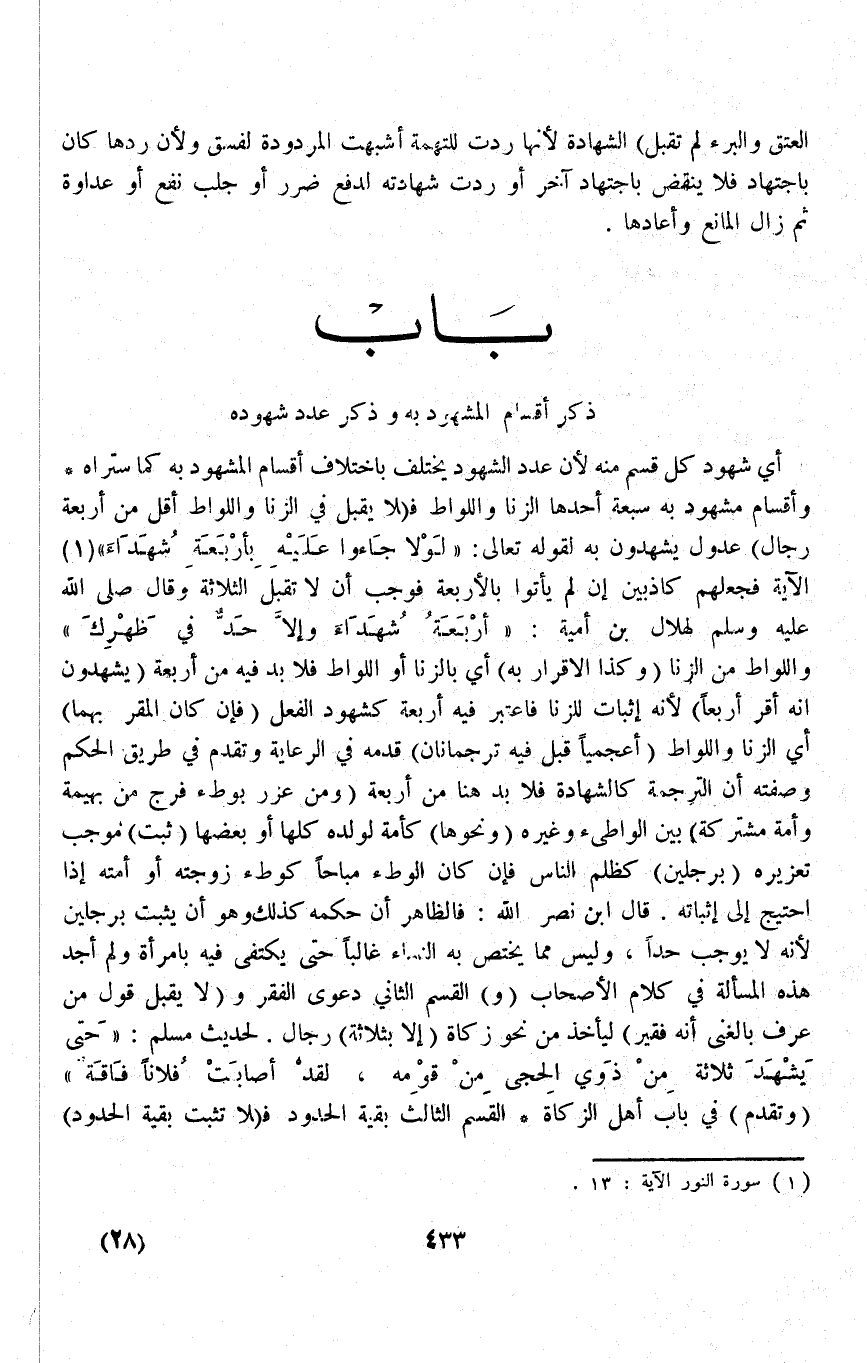 [بَاب ذِكْرِ أَقْسَامِ الْمَشْهُودِ بِهِ وَذِكْرِ عَدَدِ شُهُودِهِ]