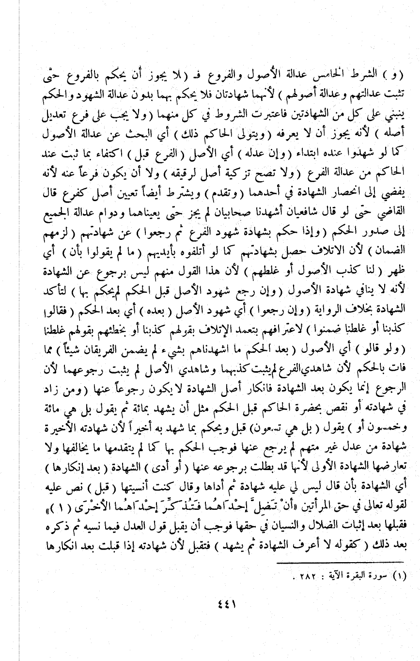 (وَ) الشَّرْطُ الْخَامِسُ عَدَالَةُ الْأُصُولِ وَالْفُرُوعِ فَ (لَا يَجُوزُ أَنْ يُحْكَمَ بِالْفُرُوعِ حَتَّى تَثْبُتَ عَدَالَتُهُمْ وَعَدَالَةُ أُصُولِهِمْ) لِأَنَّهُمَا شَهَادَتَانِ فَلَا يُحْكَمُ بِهِمَا بِدُونِ عَدَالَةِ الشُّهُودِ وَالْحُكْمُ يَنْبَنِي عَلَى كُلٍّ مِنْ الشَّهَادَتَيْنِ فَاعْتُبِرَتْ لِلشُّرُوطِ فِي كُلٍّ مِنْهُمَا.
