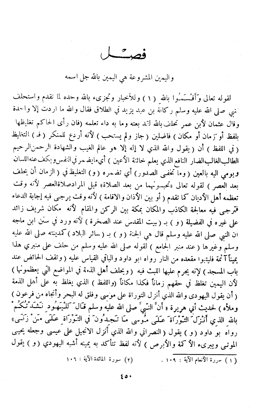[فَصْل وَالْيَمِينُ الْمَشْرُوعَةِ هِيَ الْيَمِينُ بِاَللَّهِ جَلَّ اسْمُهُ]