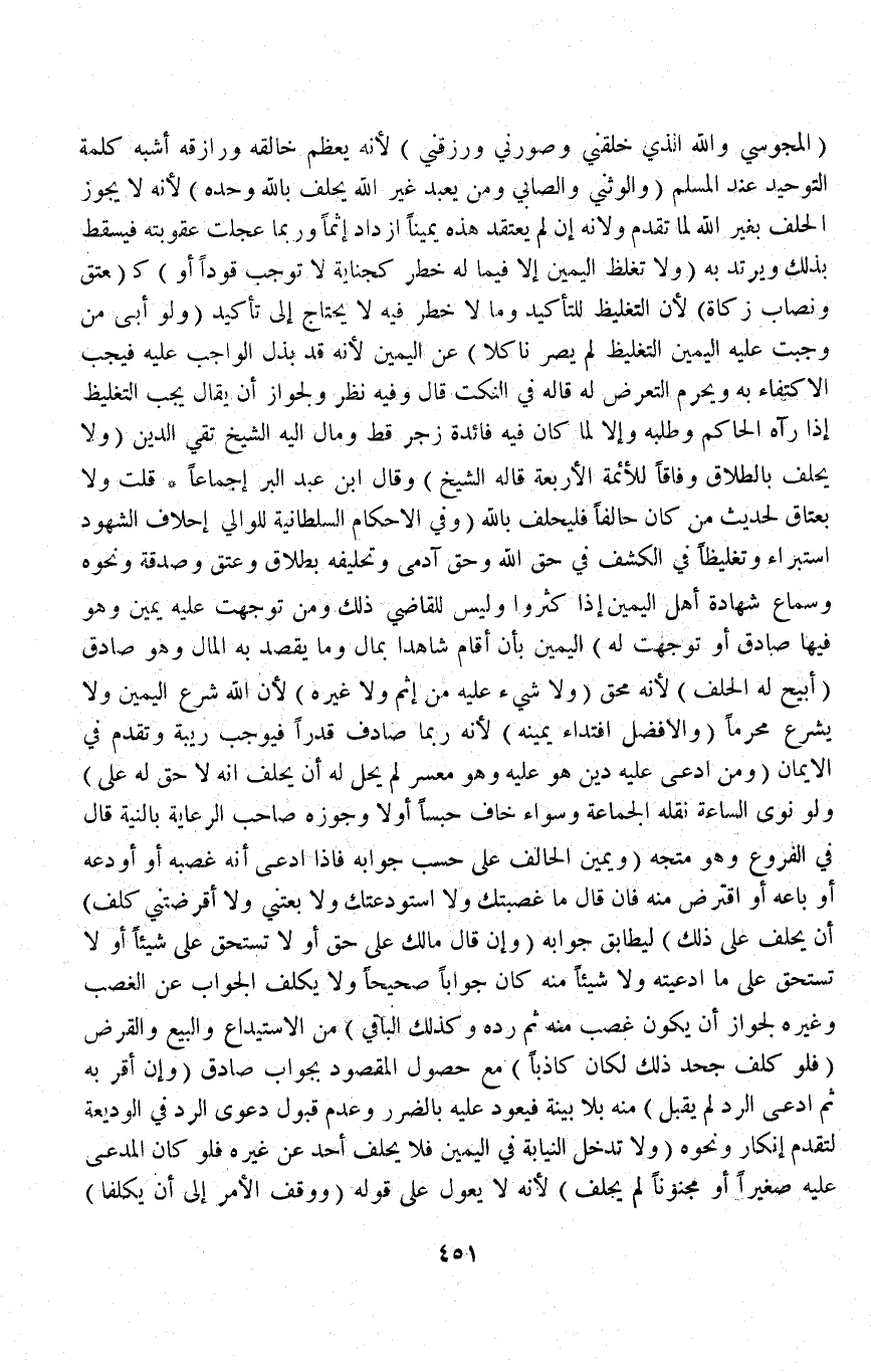 (الْمَجُوسِيُّ: وَاَللَّهِ الَّذِي خَلَقَنِي وَصَوَّرَنِي وَرَزَقَنِي) لِأَنَّهُ يُعَظِّمُ خَالِقَهُ وَرَازِقَهُ أَشْبَهَ كَلِمَةَ التَّوْحِيدِ عِنْدَ الْمُسْلِمِ (وَالْوَثَنِيُّ وَالصَّابِئُ وَمَنْ يَعْبُدُ غَيْرَ اللَّهِ يَحْلِفُ بِاَللَّهِ وَحْدَهُ) لِأَنَّهُ لَا يَجُوزُ الْحَلِفُ بِغَيْرِ اللَّهِ لِمَا تَقَدَّمَ وَلِأَنَّهُ إنْ لَمْ يَعْتَقِدْ هَذِهِ يَمِينًا ازْدَادَ إثْمًا وَرُبَّمَا عُجِّلَتْ عُقُوبَتُهُ فَيَسْقُطُ بِذَلِكَ وَيَرْتَدُّ بِهِ.