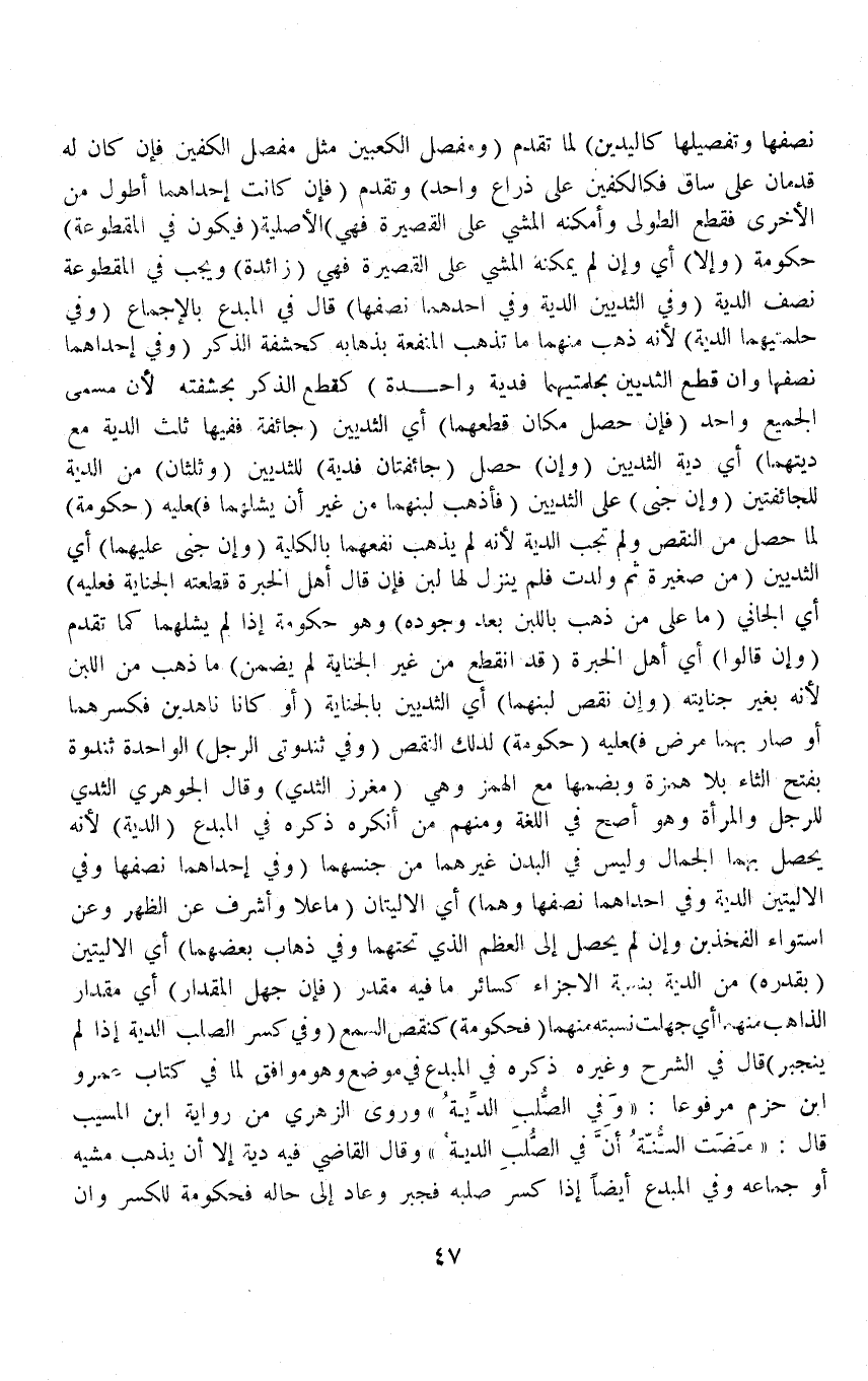 وَفِي الْمُبْدِع أَيْضًا إذَا كُسِرَ صُلْبُهُ فَجُبِرَ وَعَادَ إلَى حَالِهِ فَحُكُومَةٌ لِلْكَسْرِ وَإِنْ