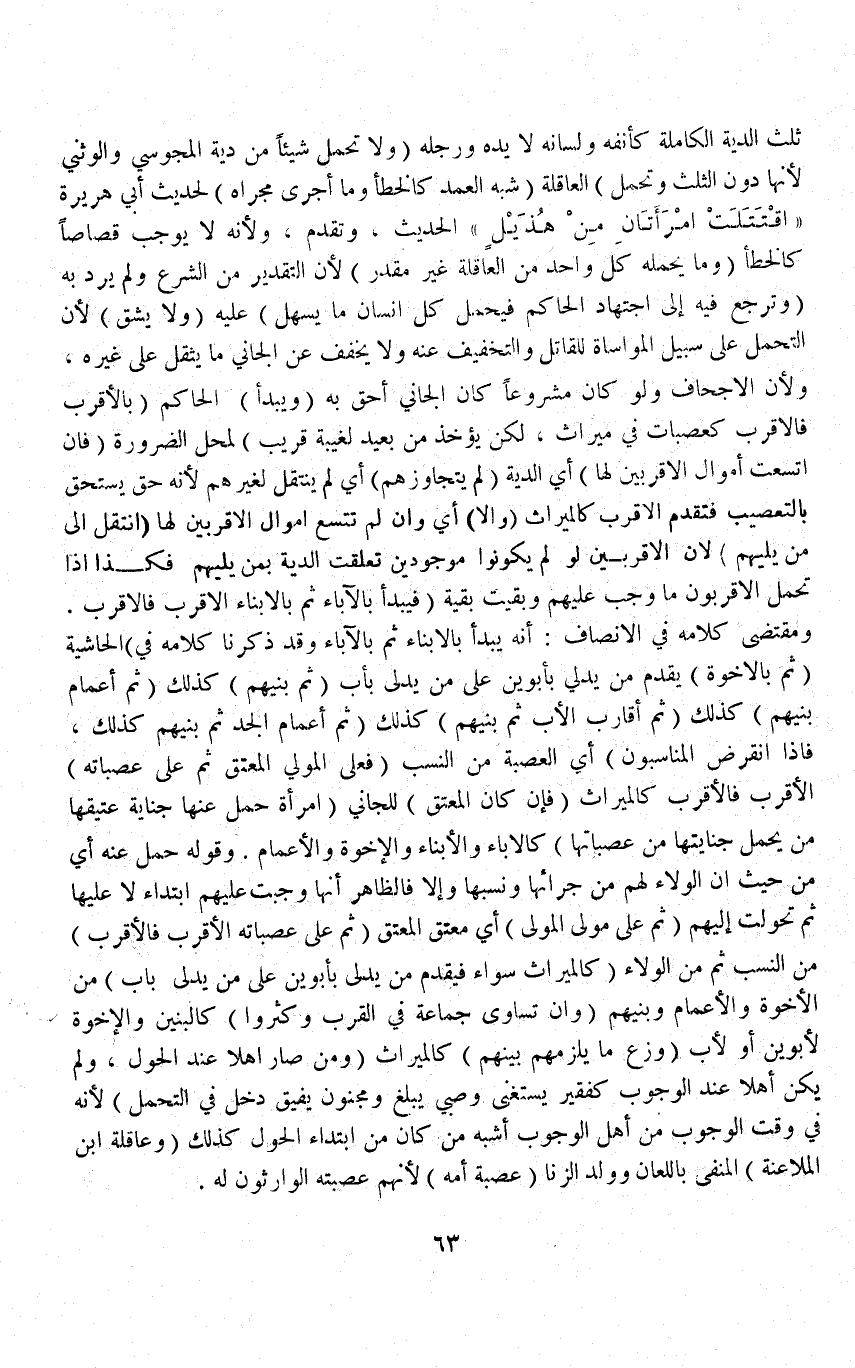 وَقَوْلُهُ حَمَلَ عَنْهُ أَيْ مِنْ حَيْثُ إنَّ الْوَلَاءَ لَهُمْ مِنْ جَرَّائِهَا وَنَسَبِهَا وَإِلَّا فَالظَّاهِرُ أَنَّهَا وَجَبَتْ عَلَيْهِمْ ابْتِدَاءً لَا عَلَيْهَا ثُمَّ تَحَوَّلَتْ إلَيْهِمَا (ثُمَّ عَلَى مَوْلَى الْمَوْلَى) أَيْ مُعْتِقِ الْمُعْتِق (ثُمَّ عَلَى عَصَبَاتِهِ الْأَقْرَبَ فَالْأَقْرَبِ) مِنْ النَّسَبِ ثُمَّ مِنْ الْوَلَاءِ (كَالْمِيرَاثِ سَوَاءٌ فَيُقَدِّمُ مَنْ يُدْلِي بِأَبَوَيْنِ عَلَى مَنْ يُدْلِي بِأَبٍ) مِنْ الْإِخْوَةِ وَالْأَعْمَامِ وَبَنِيهِمْ (وَإِنْ تَسَاوَى جَمَاعَةٌ فِي الْقُرْبِ وَكَثُرُوا) كَالْبَنِينَ وَالْإِخْوَةِ لِأَبَوَيْنِ أَوْ لِأَبٍ (وَزَّعَ مَا يَلْزَمهُمْ بَيْنَهُمْ) كَالْمِيرَاثِ (وَمَنْ صَارَ أَهْلًا عِنْدَ الْحَوْلِ، وَلَمْ يَكُنْ أَهْلًا عِنْدَ الْوُجُوبِ كَفَقِيرٍ يَسْتَغْنِي وَصَبِيٍّ يَبْلُغُ وَمَجْنُونٍ يُفِيقُ دَخَلَ فِي التَّحَمُّلِ) لِأَنَّهُ فِي وَقْت الْوُجُوبِ مِنْ أَهْلِ الْوُجُوبِ أَشْبَهَ مَنْ كَانَ مِنْ ابْتِدَاءِ الْحَوْلِ كَذَلِكَ (وَعَاقِلَةُ ابْنُ الْمُلَاعَنَةِ) الْمَنْفِيِّ بِاللِّعَانِ وَوَلَدِ الزِّنَا (عَصَبَةُ أُمِّهِ) لِأَنَّهُمْ عَصَبَتُهُ الْوَارِثُونَ لَهُ.