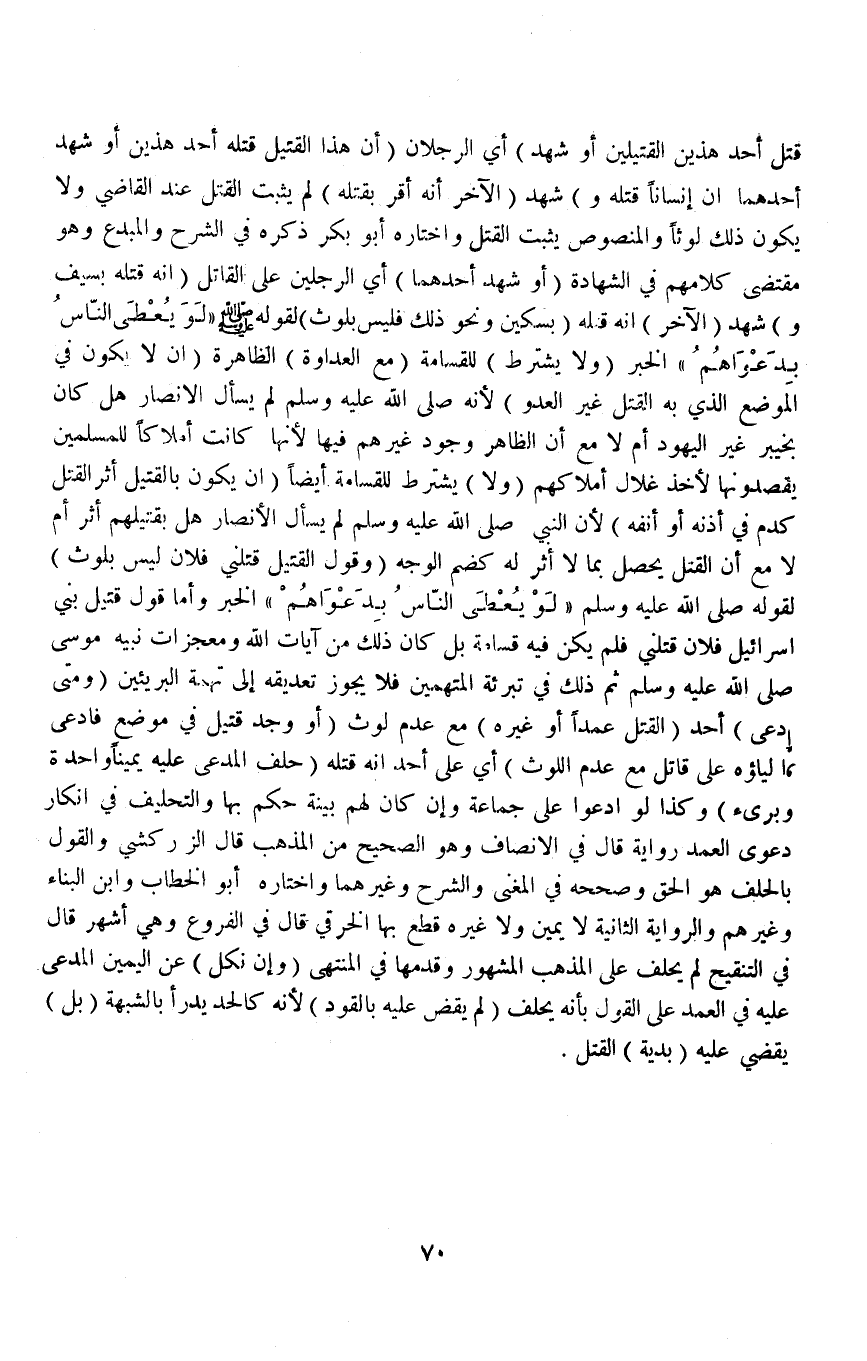 (وَمَتَى ادَّعَى) أَحَدٌ (الْقَتْلَ عَمْدًا أَوْ غَيْرَهُ) مَعَ عَدَمِ لَوْثٍ (أَوْ وُجِدَ قَتِيلٌ فِي مَوْضِعٍ فَادَّعَى أَوْلِيَاؤُهُ عَلَى قَاتِل مَعَ عَدَم اللَّوْث) أَيْ عَلَى أَحَد أَنَّهُ قَتَلَهُ (حَلَفَ الْمُدَّعَى عَلَيْهِ يَمِينًا وَاحِدَةً وَبَرِئَ) وَكَذَا لَوْ ادَّعَوْا عَلَى جَمَاعَةٍ وَإِنْ كَانَ لَهُمْ بَيِّنَةٌ حُكِمَ بِهَا وَالتَّحْلِيفُ فِي إنْكَارِ دَعْوَى الْعَمْدِ رِوَايَةٌ قَالَ فِي الْإِنْصَافِ وَهُوَ الصَّحِيحُ مِنْ الْمَذْهَبِ قَالَ الزَّرْكَشِيّ وَالْقَوْلُ بِالْحَلِفِ هُوَ الْحَقُّ وَصَحَّحَهُ فِي الْمُغْنِي وَالشَّرْحِ وَغَيْرِهِمَا وَاخْتَارَهُ أَبُو الْخَطَّابِ وَابْن الْبَنَّاءِ وَغَيْرِهِمْ وَالرِّوَايَة الثَّانِيَةُ لَا يَمِينَ وَلَا غَيْرَهُ قَطَعَ بِهَا الْخِرَقِيُّ قَالَ فِي الْفُرُوعِ وَهِيَ أَشْهَرُ قَالَ فِي التَّنْقِيحِ لَمْ يَحْلِفْ عَلَى الْمَذْهَبِ الْمَشْهُورِ وَقَدَّمَهَا فِي الْمُنْتَهَى (وَإِنْ نَكَلَ) عَنْ الْيَمِينِ الْمُدَّعَى عَلَيْهِ فِي الْعَمْدِ عَلَى الْقَوْلِ بِأَنَّهُ يَحْلِفُ (لَمْ يَقْضِ عَلَيْهِ بِالْقَوَدِ) لِأَنَّهُ كَالْحَدِّ يُدْرَأُ بِالشُّبْهَةِ (بَلْ) يَقْضِي عَلَيْهِ (بِدِيَةِ) الْقَتْلِ.