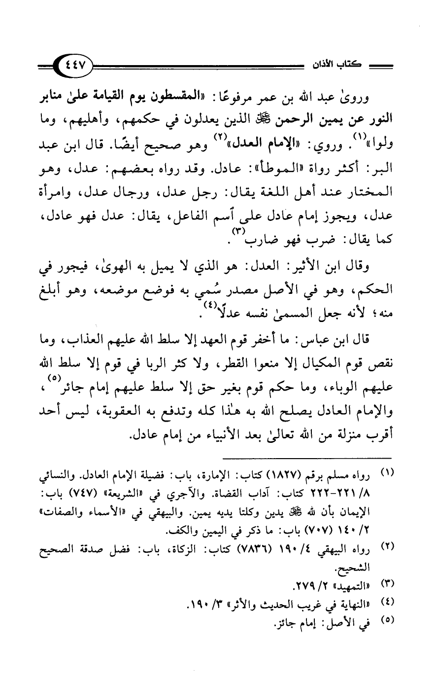 (¬1) رواه مسلم برقم (1827) كتاب: الإمارة، باب: فضيلة الإمام العادل. والنسائي 8/ 221 - 222 كتاب: آداب القضاة. والآجري في "الشريعة" (747) باب: الإيمان بأن لله -عز وجل- يدين وكلتا يديه يمين. والبيهقى في "الأسماء والصفات" 2/ 140 (707) باب: ما ذكر في اليمين والكف.