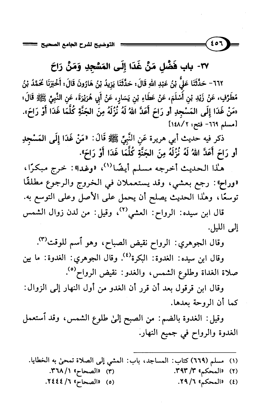 37 - باب فَضْلِ مَنْ غَدَا إِلَى المَسْجِدِ وَمَنْ رَاحَ