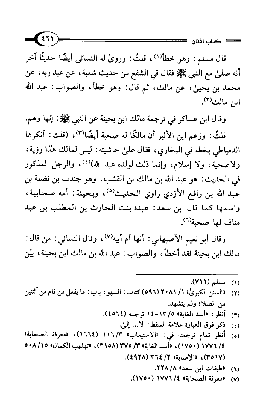 قلتُ: وزعم ابن الأثير أن مالكًا له صحبة أيضًا (¬3)، (قلت: أنكرها الدمياطي بخطه في البخاري، فقال على حاشيته: ليس لمالك هذا رؤية، ولا صحبة، ولا إسلام، وإنما ذلك لولده عبد الله) (¬4)، والرجل المذكور في الحديث: هو عبد الله بن مالك بن القشب، وهو جندب بن نضلة بن عبد الله بن رافع الأزدي راوي الحديث (¬5)، وبحينة: أمه صحابية، واسمها كما قال ابن سعد: عبدة بنت الحارث بن المطلب بن عبد مناف لها صحبة (¬6).