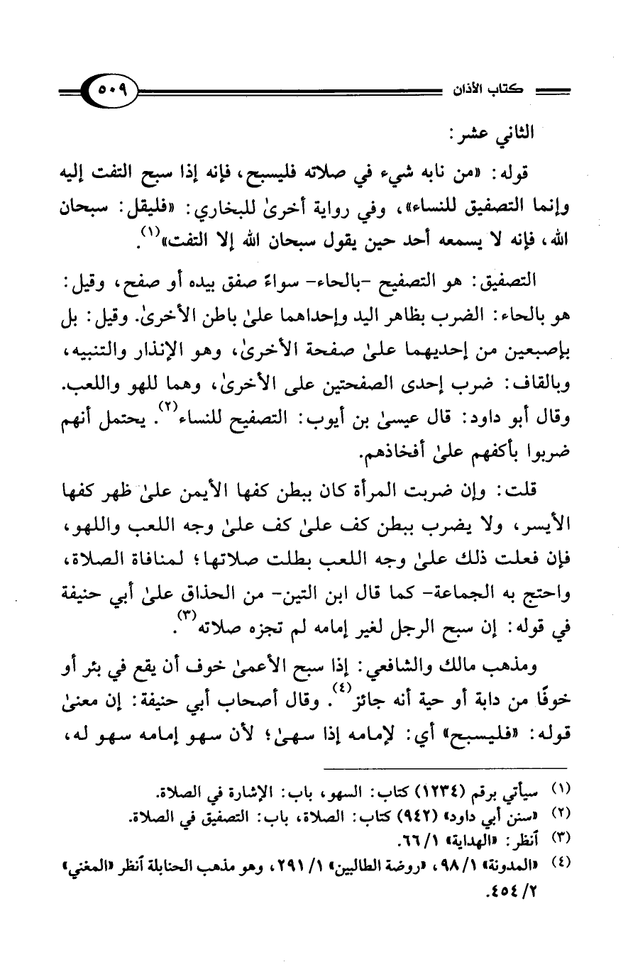 (¬2) "سنن أبي داود" (942) كتاب: الصلاة، باب: التصفيق في الصلاة.
