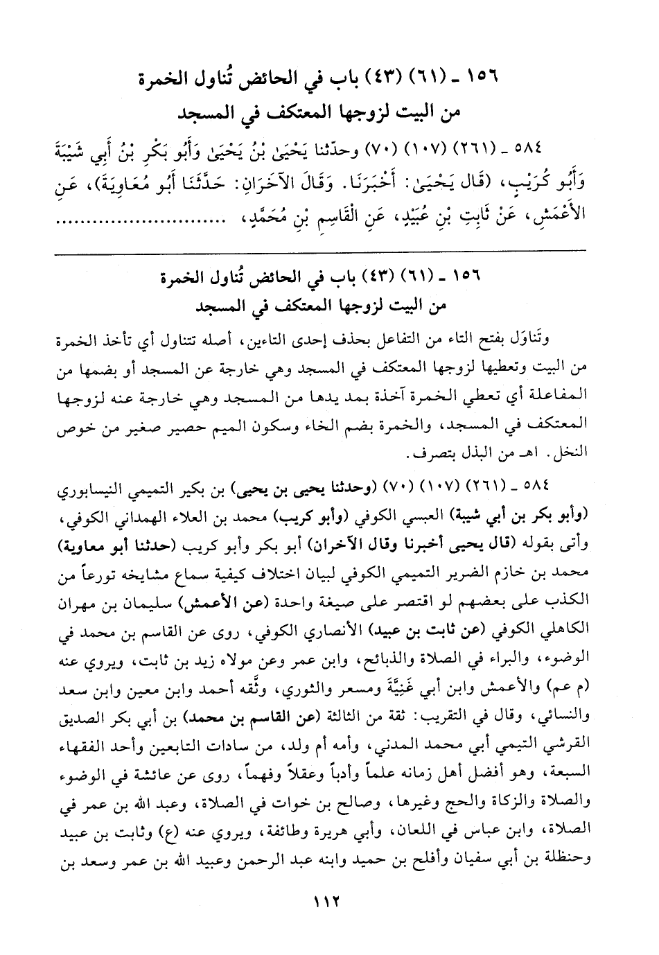 ١٥٦ - (٦١) (٤٣) باب في الحائض تُناول الخمرة من البيت لزوجها المعتكف في المسجد