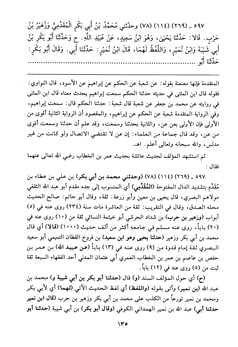 ٥٩٧ - (٢٦٩) (١١٤) (٧٨) وحدَّثني مُحَمَّدُ بْنُ أَبِي بَكرٍ الْمُقَدَّمِيُّ وَزُهَيرُ بْنُ حَرْبٍ. قَالا: حَدَّثَنَا يَحْيى، وَهُوَ ابْنُ سَعِيدٍ، عَنْ عُبَيدِ اللهِ. ح وَحَدَّثَنَا أَبُو بَكْرِ بْنُ أَبِي شَيبَةَ وَابْنُ نُمَيرٍ، وَاللَّفْظُ لَهُمَا، قَال ابْنُ نُمَيرٍ: حَدَّثَنَا أَبِي. وَقَال أَبُو بَكْرٍ: حَدَّثَنَا أَبُو