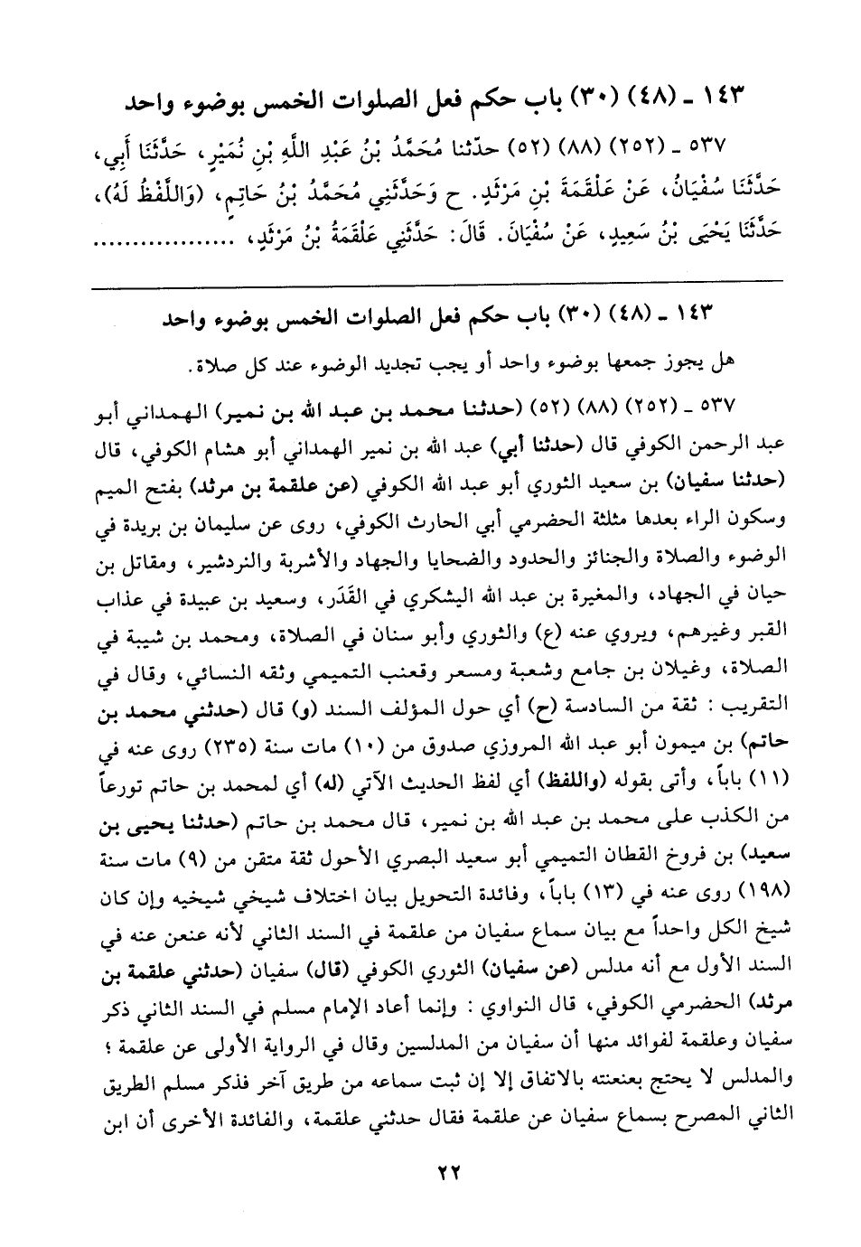 ١٤٣ - (٤٨) (٣٠) باب حكم فعل الصلوات الخمس بوضوء واحد
