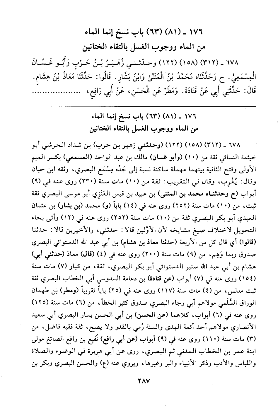 ١٧٦ - (٨١) (٦٣) باب نسخ إنما الماء من الماء ووجوب الغسل بالتقاء الختانين
