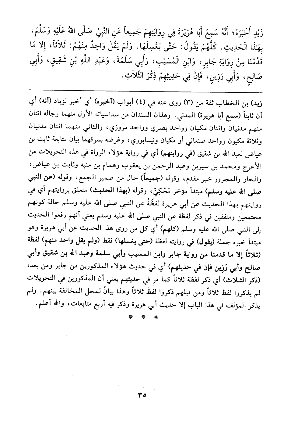 زَيدٍ أَخْبَرَهُ؛ أَنَّهُ سَمِعَ أَبَا هُرَيرَةَ فِي رِوَايَتِهِمْ جَمِيعًا عَنِ النَّبِيِّ صَلَّى اللهُ عَلَيهِ وَسَلَّمَ، بِهَذَا الْحَدِيثِ. كُلُّهُمْ يَقُولُ: حَتَّى يَغْسِلَهَا. وَلَمْ يَقُلْ وَاحِدٌ مِنْهُمْ: ثَلاثًا، إِلا مَا قَدَّمْنَا مِنْ رِوَايَةِ جَابِرٍ، وَابْنِ الْمُسَيَّبِ، وَأَبِي سَلَمَةَ، وَعَبْدِ اللَّهِ بْنِ شَقِيقٍ، وَأَبِي صَالِحٍ، وَأَبِي رَزِينٍ، فَإِنَّ فِي حَدِيثِهِمْ ذِكْرَ الثَّلاثِ