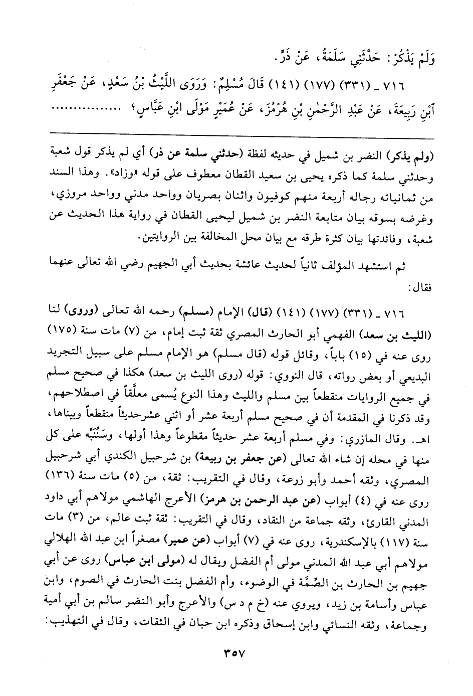 ٧١٦ - (٣٣١) (١٧٧) (١٤١) قَال مُسْلِمٌ: وَرَوَى اللَّيثُ بْنُ سَعْدٍ، عَنْ جَعْفَرِ بْنِ رَبِيعَةَ، عَنْ عَبْدِ الرَّحْمنِ بْنِ هُرْمُزَ، عَنْ عُمَيرٍ مَوْلَى ابْنِ عَبَّاسٍ؛