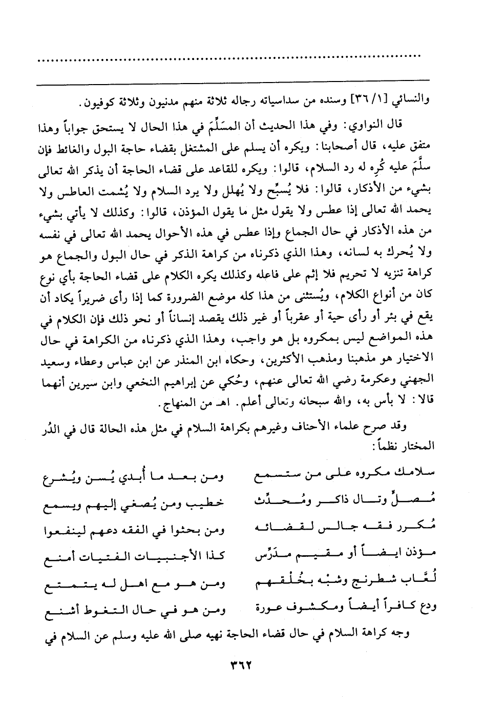 وجه كراهة السلام في حال قضاء الحاجة نهيه صلى الله عليه وسلم عن السلام في