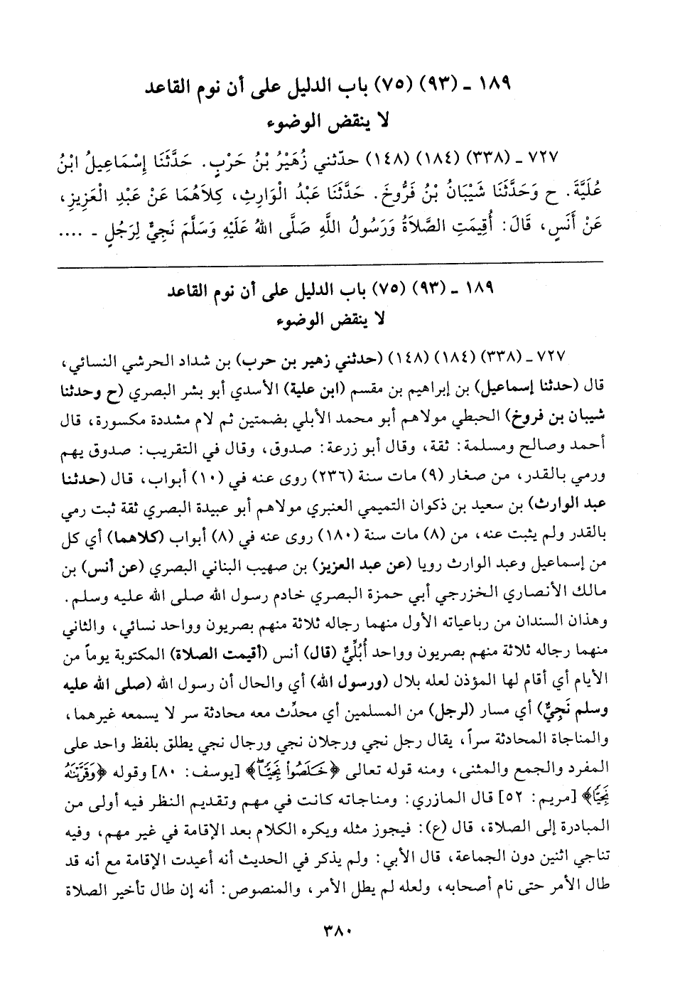 ١٨٩ - (٩٣) (٧٥) باب الدليل على أن نوم القاعد لا ينقض الوضوء
