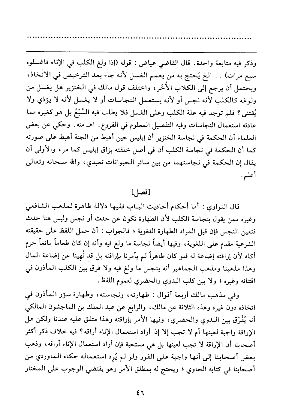 قال النواوي: أما أحكام أحاديث الباب ففيها دلالة ظاهرة لمذهب الشافعي وغيره ممن يقول بنجاسة الكلب لأن الطهارة تكون عن حدث أو نجس وليس هنا حدث فتعين النجس فإن قيل المراد الطهارة اللغوية؛ فالجواب: أن حمل اللفظ على حقيقته الشرعية مقدم على اللغوية، وفيها أيضًا نجاسة ما ولغ فيه وأنه إن كان طعامًا مائعًا حرم أكله لأن إراقته إضاعة له فلو كان طاهرًا لم يأمرنا بإراقته بل قد نُهِينا عن إضاعة المال وهذا مذهبنا ومذهب الجماهير أنه ينجس ما ولغ فيه ولا فرق بين الكلب المأذون في اقتنائه وغيره؛ ولا بين كلب البدوي والحضري لعموم اللفظ.
