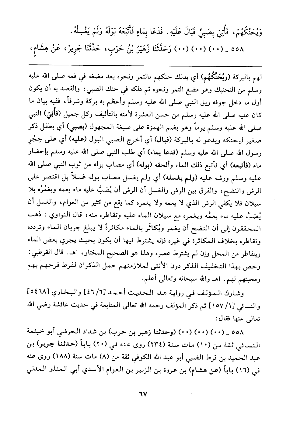 ٥٥٨ - (٠٠) (٠٠) (٠٠) (وحدثنا زهير بن حرب) بن شداد الحرشي أبو خيثمة النسائي ثقة من (١٠) مات سنة (٢٣٤) روى عنه في (٢٠) بابا (حدثنا جرير) بن عبد الحميد بن قرط الضبي أبو عبد الله الكوفي ثقة من (٨) مات سنة (١٨٨) روى عنه في (١٦) بابا (عن هشام) بن عروة بن الزبير بن العوام الأسدي أبي المنذر المدني