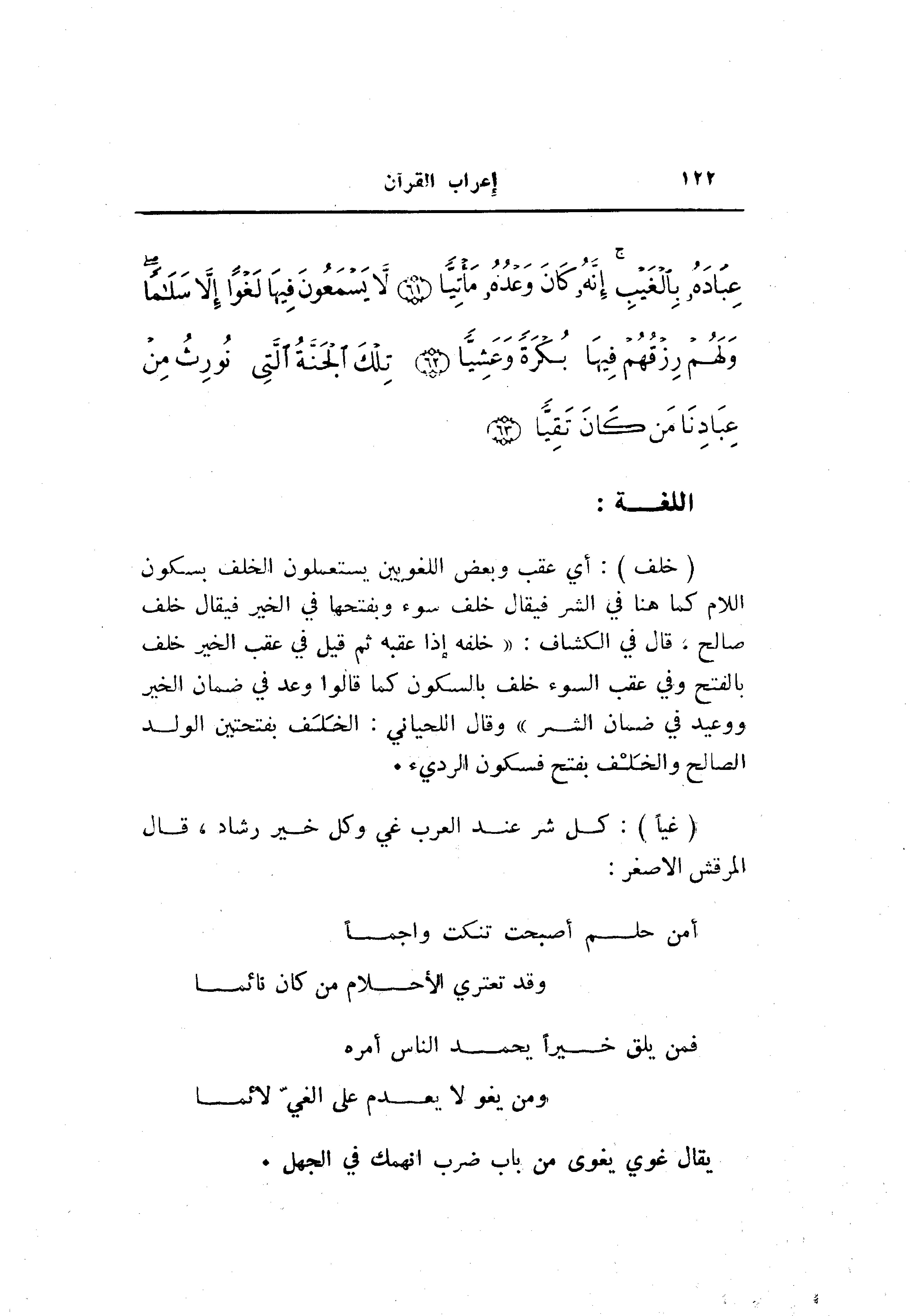 (غَيًّا) : كل شر عند العرب غي وكل خير رشاد، قال المرقش الأصغر:
