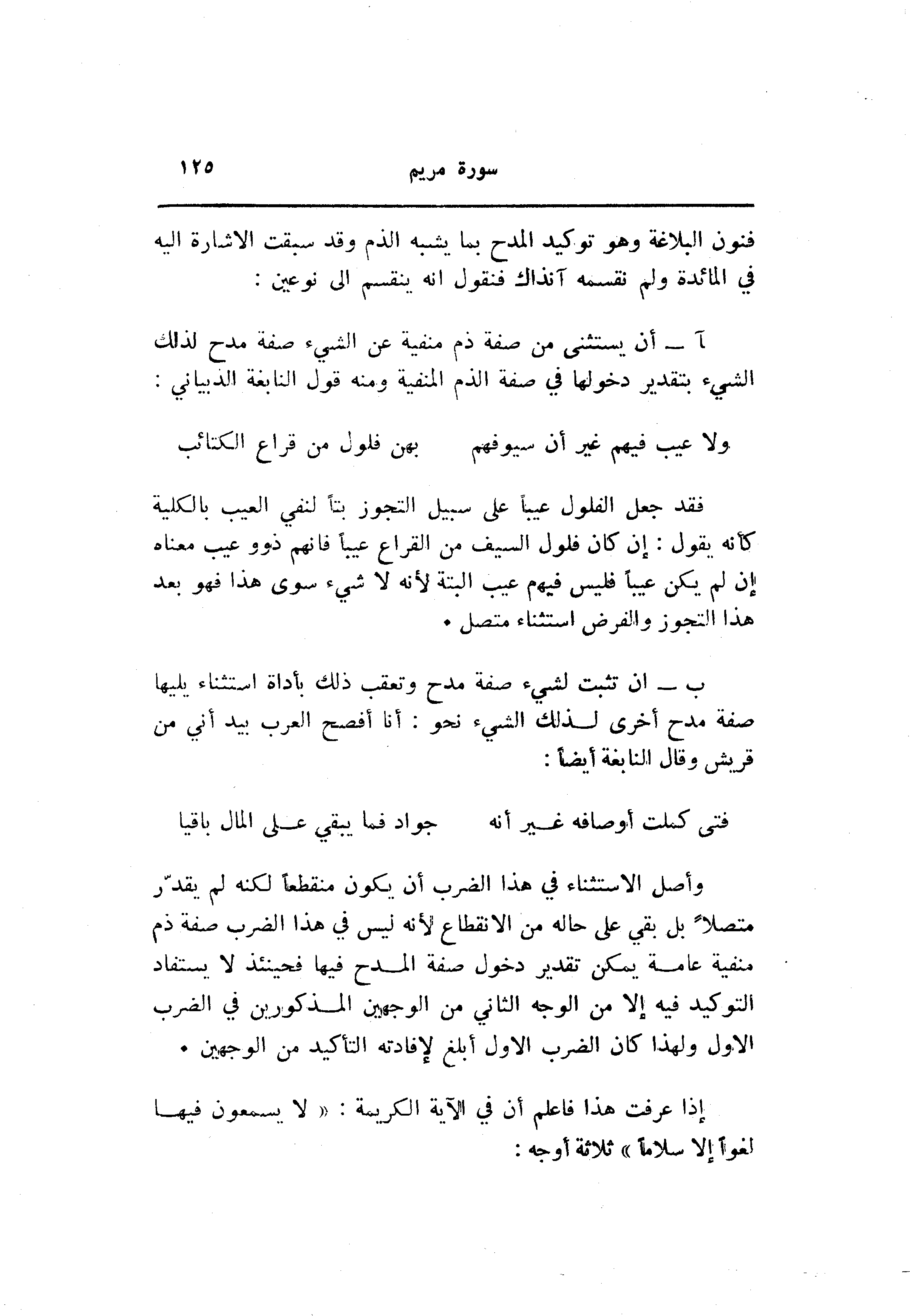 فنون البلاغة وهو توكيد المدح بما يشبه الذم وقد سبقت الاشارة اليه في المائدة ولم نقسمه آنذاك فنقول انه ينقسم الى نوعين: