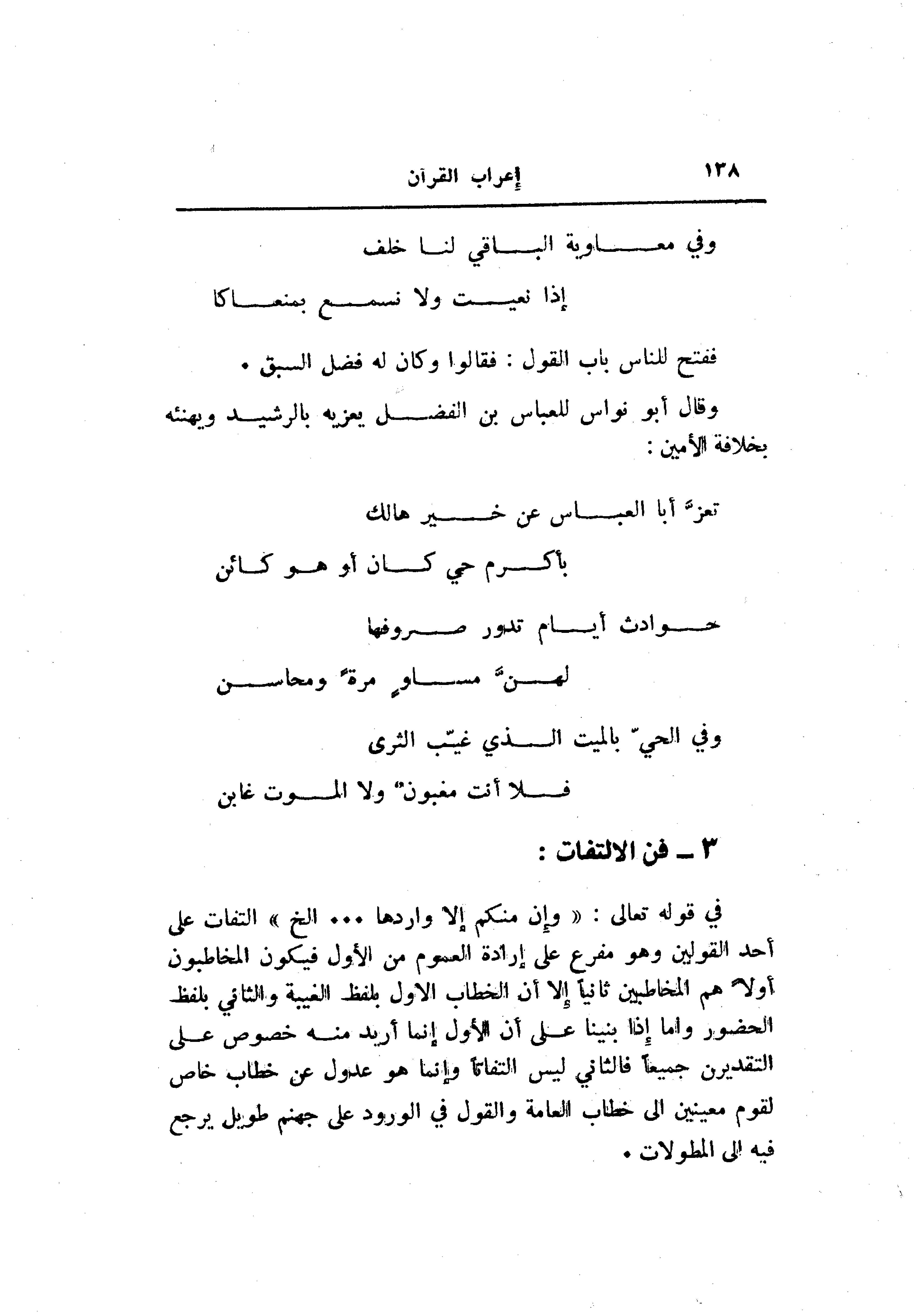 في قوله تعالى: «وَإِنْ مِنْكُمْ إِلَّا وارِدُها ... الخ» التفات على أحد القولين وهو مفرع على إرادة العموم من الأول فيكون المخاطبون أولا هم المخاطبين ثانيا إلا أن الخطاب الاول بلفظ الغيبة والثاني بلفظ الحضور واما إذا بنينا على أن الأول إنما أريد منه خصوص على التقديرين جميعا فالثاني ليس التفاتا وإنما هو عدول عن خطاب خاص لقوم معينين الى خطاب العامة والقول في الورود على جهنم طويل يرجع فيه الى المطولات.