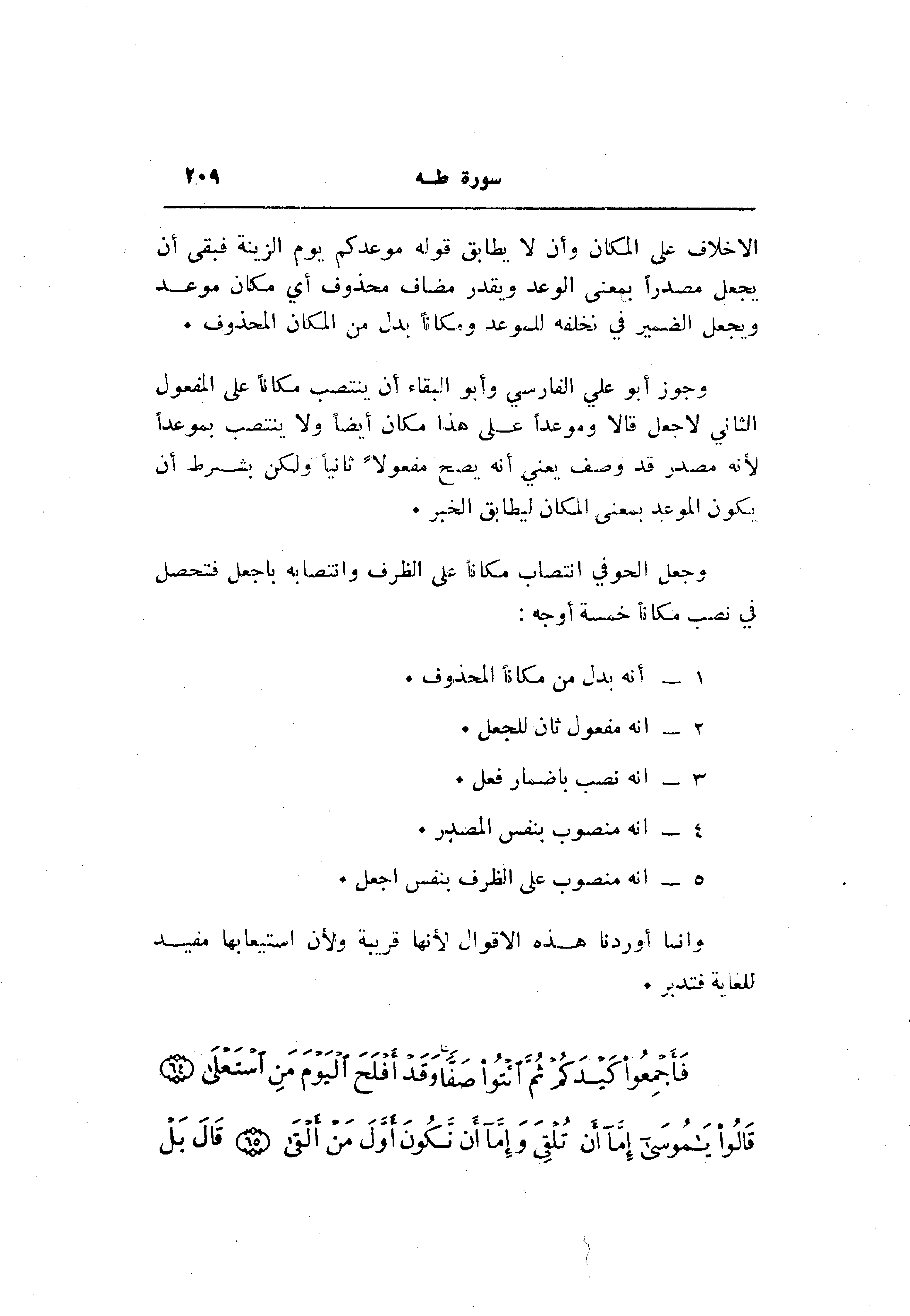 وجعل الحوفي انتصاب مكانا على الظرف وانتصابه باجعل فتحصل في نصب مكانا خمسة أوجه: