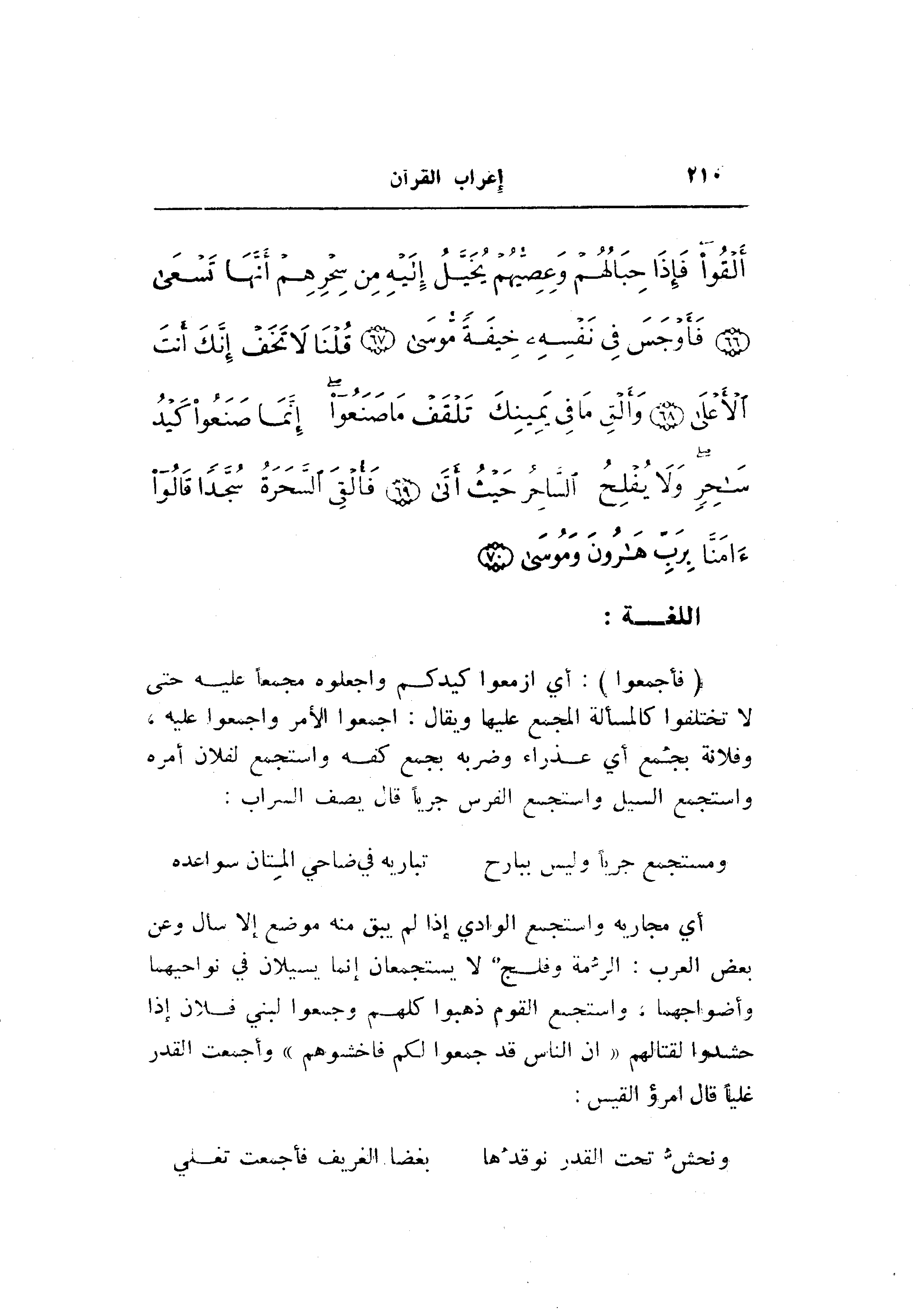 أي مجاريه واستجمع الوادي إذا لم يبق منه موضع إلا سال وعن بعض العرب: الرّمة وفلج لا يستجمعان إنما يسيلان في نواحيهما وأضواحهما، واستجمع القوم ذهبوا كلهم وجمعوا لبني فلان إذا حشدوا لقتالهم «إِنَّ النَّاسَ قَدْ جَمَعُوا لَكُمْ فَاخْشَوْهُمْ» وأجمعت القدر غليا قال امرؤ القيس: