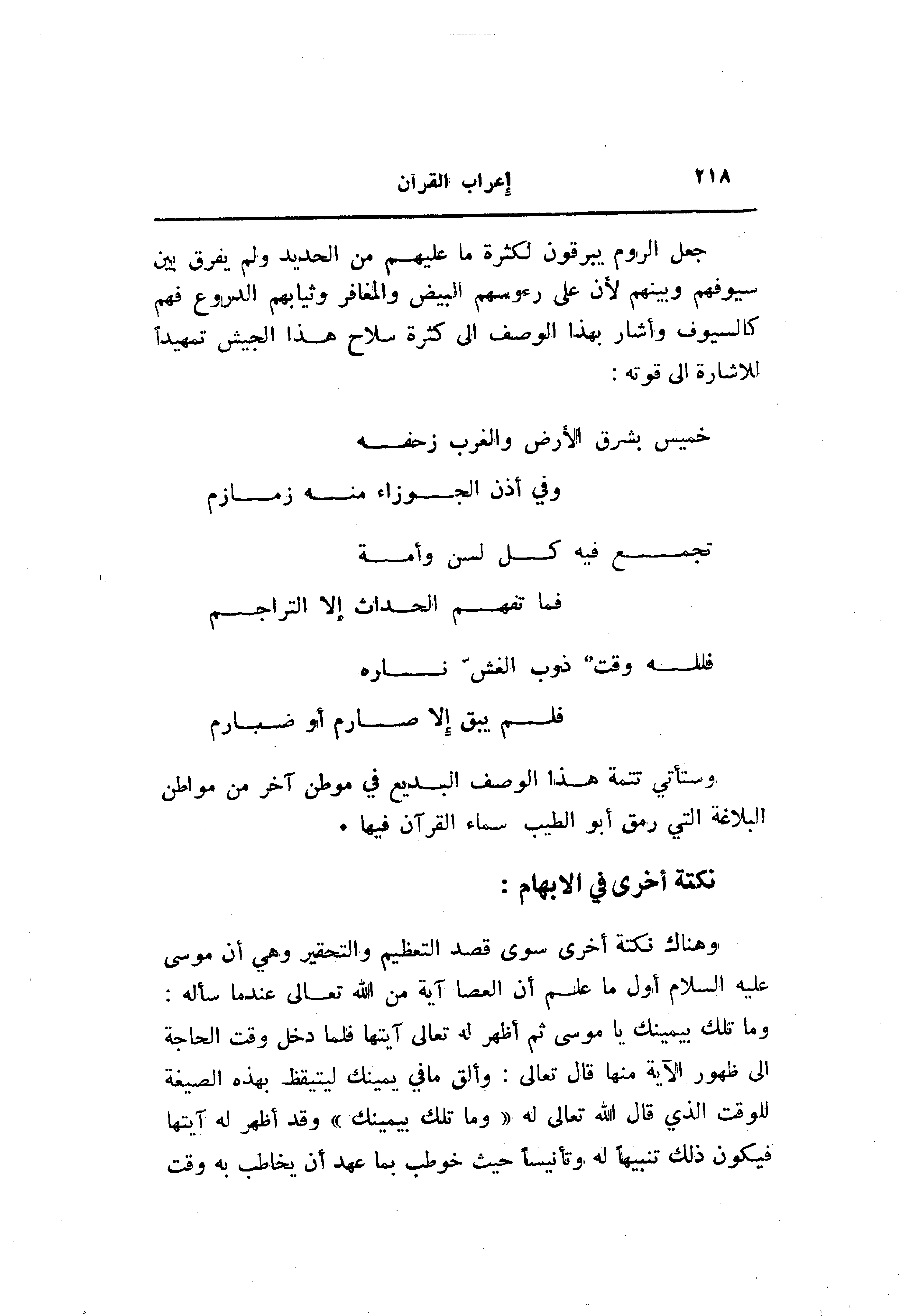 وستأتي تتمة هذا الوصف البديع في موطن آخر من مواطن البلاغة التي رمق أبو الطيب سماء القرآن فيها.