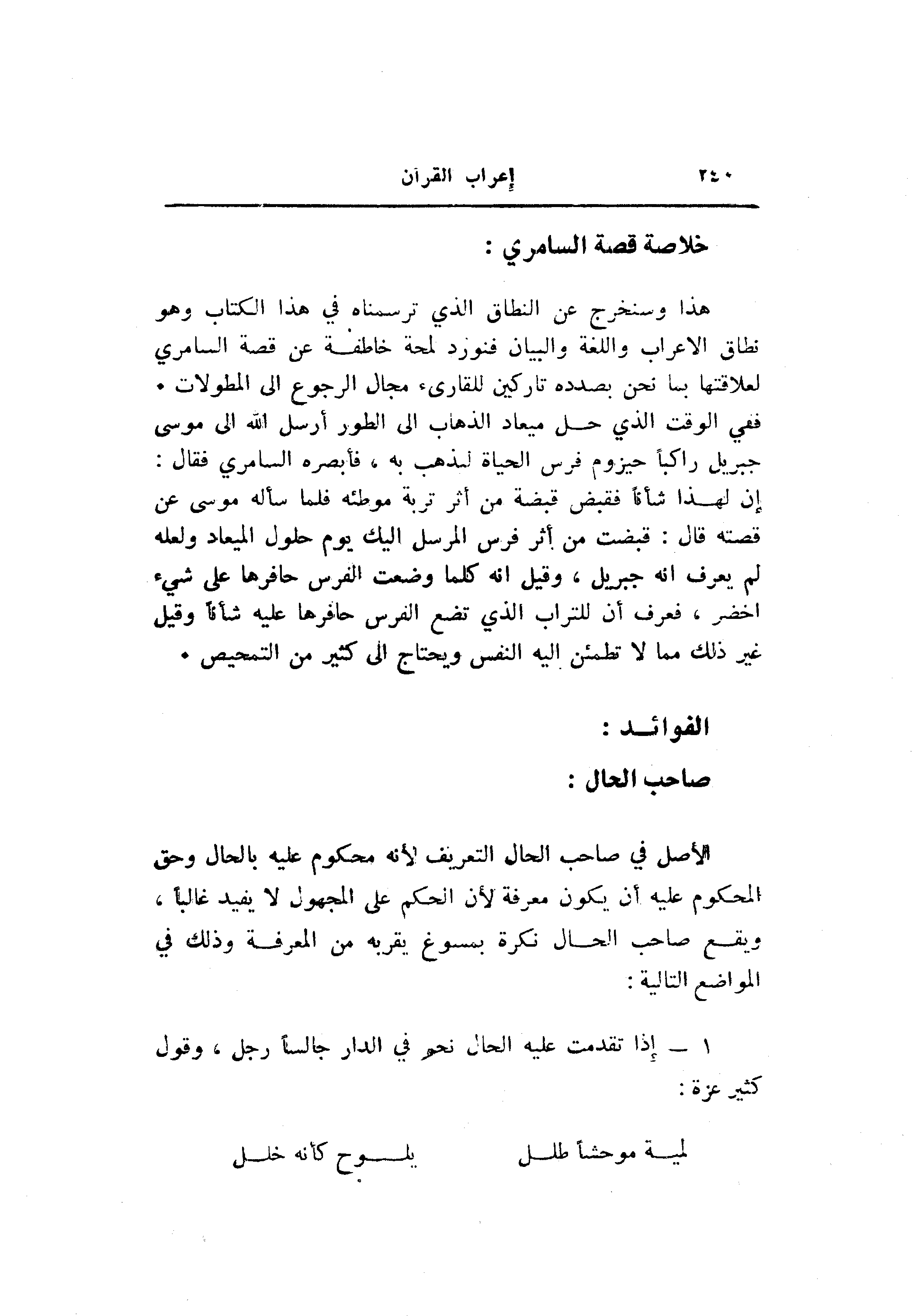 هذا وسنخرج عن النطاق الذي ترسمناه في هذا الكتاب وهو نطاق الاعراب واللغة والبيان فنورد لمحة خاطفة عن قصة السامري لعلاقتها بما نحن بصدده تاركين للقارئ مجال الرجوع الى المطولات.